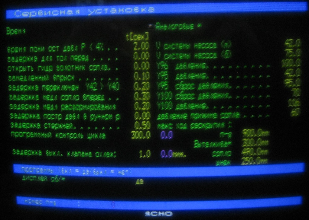 Поставим вопрос по другому. Когда гудит, сиреневая цифра меняется? Если на запирание формы выставлено 250 бар, то при наборе этих 250 (сиреневая) магниты отключаются и цикл может быть продолжен. Реально, сколько набирает?