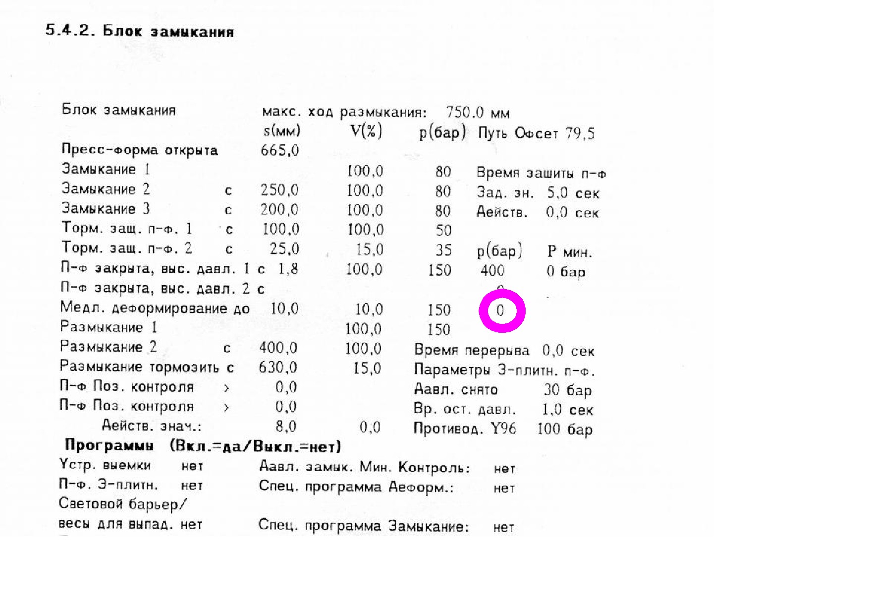 Ещё раз попрошу фото экран смыкания в момент, когда гудит (надеюсь, что гудит при подходе в закрытое положение ПФ). Это может означать, что давление запирания формы (сиреневая) не достигает заданного значения. И тут могут быть варианты.