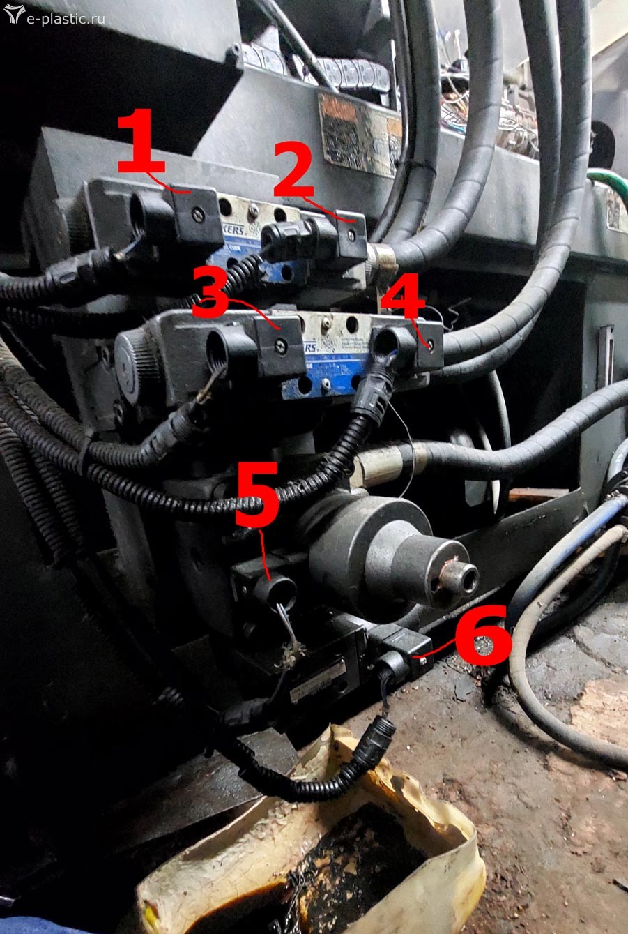 На станке ДВА пропорциональных регулятора - давления (Pressure) и скорости выполнения операций (расхода, Flow). Оперативно не подскажу, где какой, с этим лучше к ЗЮМ'у. Электросхемы вам дали, просто распечатайте их - будет удобнее. Цветными ручками можно поставить номера проводов именно вашего ТПА. У разных производителей ТПА маркировка отличается, смысл и привязка к контроллеру у всех одинакова. Здесь вам помогла бы крышка контроллера с надписями. Свои фото оперативно опять же не найду - недавно поменял платформу (компьютер), часть архивов утрачена. Со всеми замечаниями и предложениями по электросхемам - ко мне, рисовал я. Циклограмму и гидросхему так и не дорисовал - качество исходника так себе, да и материальной компенсации никакой, а времени уходит много.