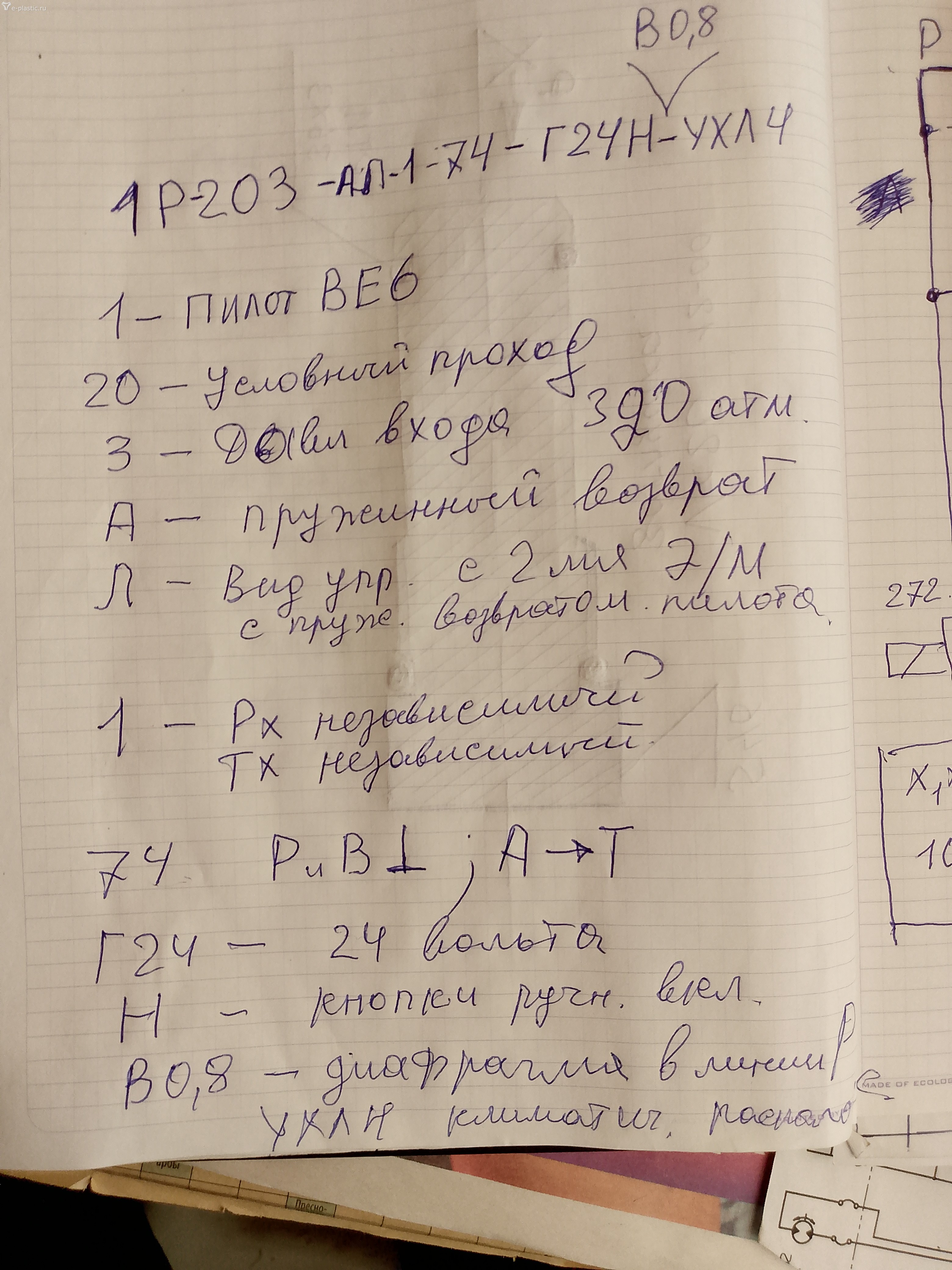 Ваш код для заказа: 1Р-203-АЛ-1-74-Г24Н(В0.8мм)-УХЛ4. 1- пилот ВЕ6. ДУ- 6мм; 20- условный проход; 3-Давление 320 кг/см кв.; А- пружинный возврат. ; Л- вид управления с двумя э/м с пружинным возвратом золотника пилота.; 1- поток управления вход не зависимый, слив не зависимый ( видно из схемы ТПА) ; 74- схема распределения потока большого золотника Р и В изолированы, А и Т обьединены.; Г24 - 24 вольта.; Н- кнопки в электромагниты ручного вкл.; В 0,8 - жиклёр в канале Р пилота 0,8мм. ( Заменяет шарик у немцев) Для удержания золотника большого в крайних положениях в случае просадки давления в системе в момент движений ; УХЛ4- климатическое расположение. Сохрани в ремонтной карте. Твой точь в точь такой же. Мировой стандарт. Крепеж по координатам совпадет.