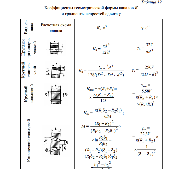 Коэффициенты геометрической формы канала головки