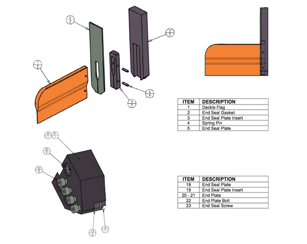 Запросите у оригинального производителя. В каталогах они идут как Deckle. Идут абсолютно любой ширины, но есть правило, что суммарное перекрытие 2-х заглушек (Deckle) не более 40% от номинальной ширины. Могу обмануть, но вещь абсолютно не дорогая, комплект стоит в районе 1000-1500 USD.