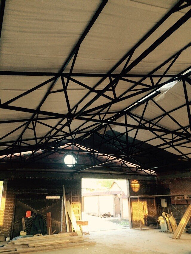 1) Помещение 15mx13mx3.3m Высота указана от пола до нижнего пояса фермы. (фото ниже)