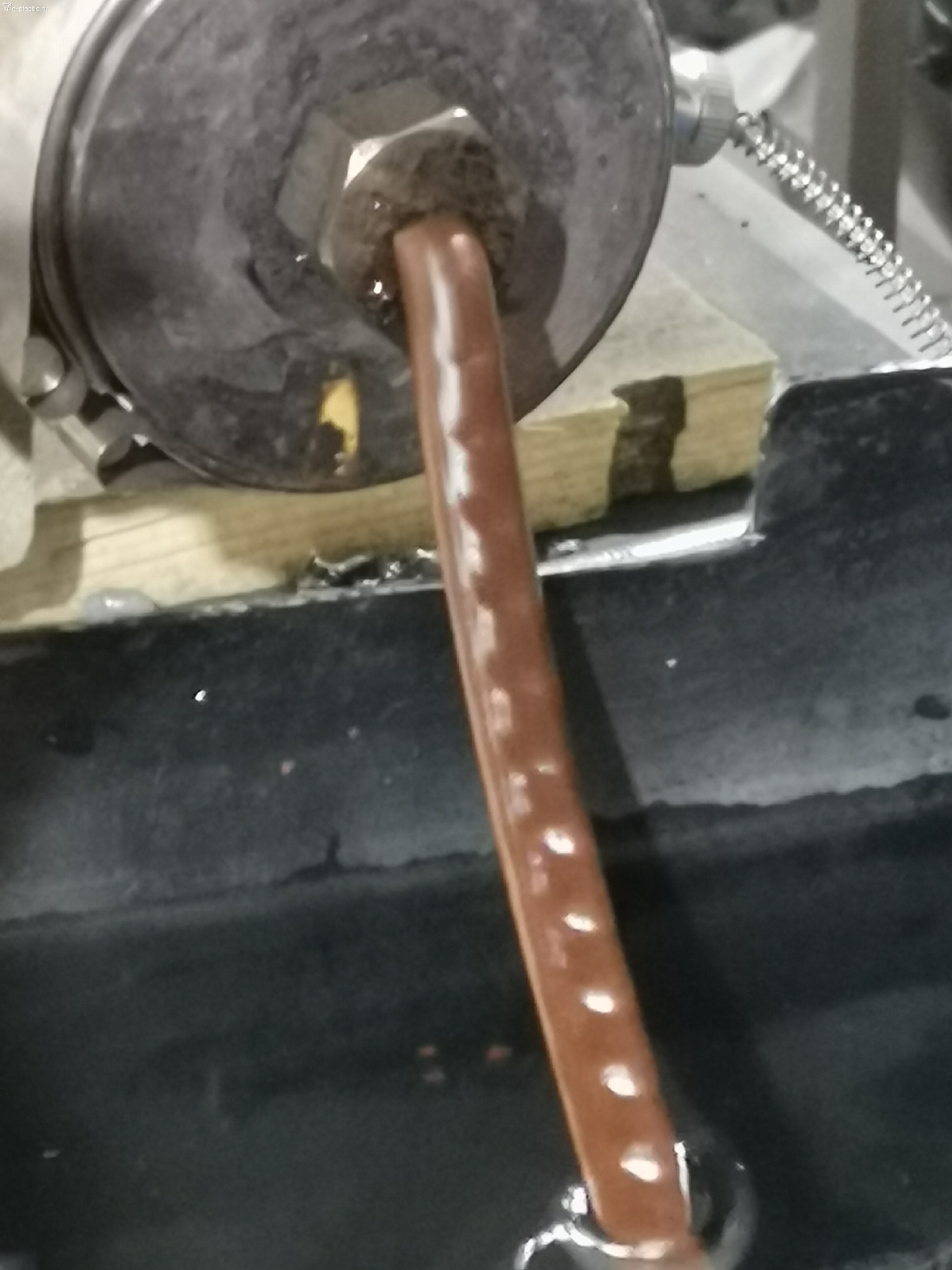 . Подскажите кто нибудь сталкивался с таким явлением? Не понятно от чего, экструдер может целый день работать ровно, на следующий вот эта вещь... Ночь пройдёт, запускаем, все ровно и может весь день ровно идти, а может и не ровно, предпосылок никаких не заметила. Это стало происходить после снятия головы для замеров, чтобы заказать другую, может прикрутили чего неправильно? Если поменять фильеру на пруток, то этой проблемы нет, спустя время поменять обратно на полумесяц, полумесяц идёт ровно.