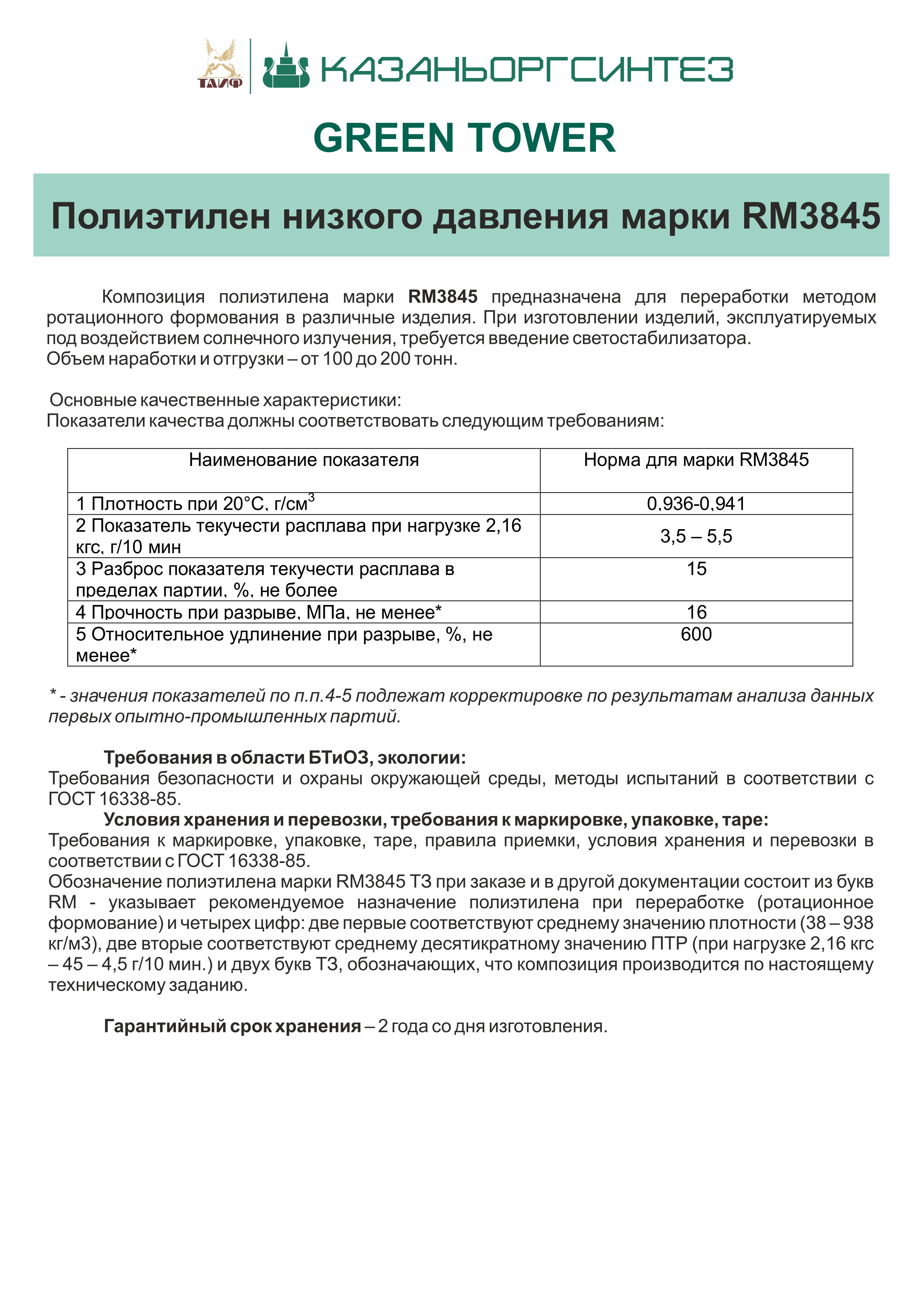 ТС вводит в заблуждение, казанский полиэтилен есть RM3845 (паспорт прикрепил), RM3840 казанского не существует.