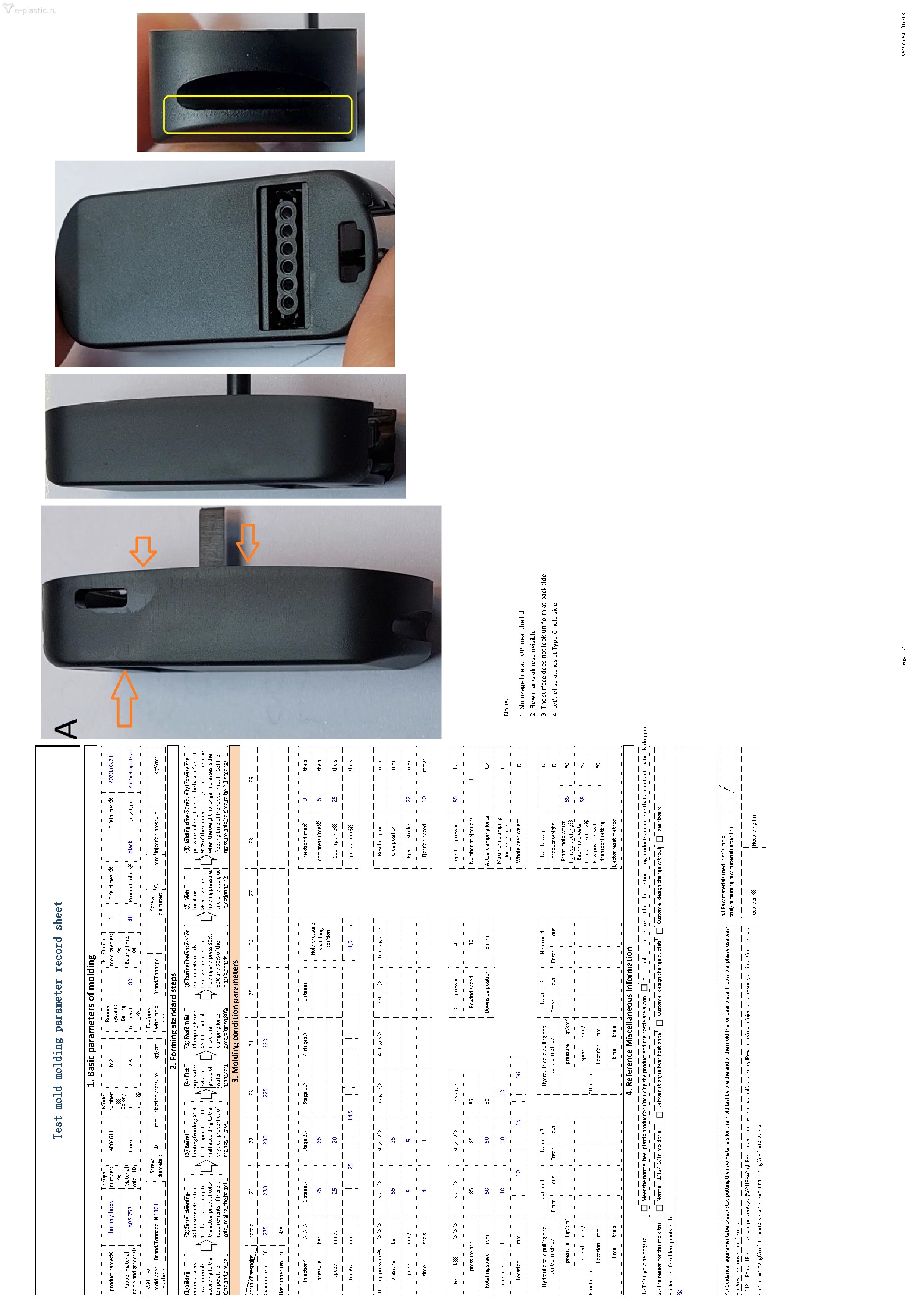 Шагрень позже делали? Всё дело в давлении после впрыска ( дожим) . Сначала не хватает , затем сильно много. Деталь переполнена . При раскрытии царапается. Пробуйте регулировать временем дожима.