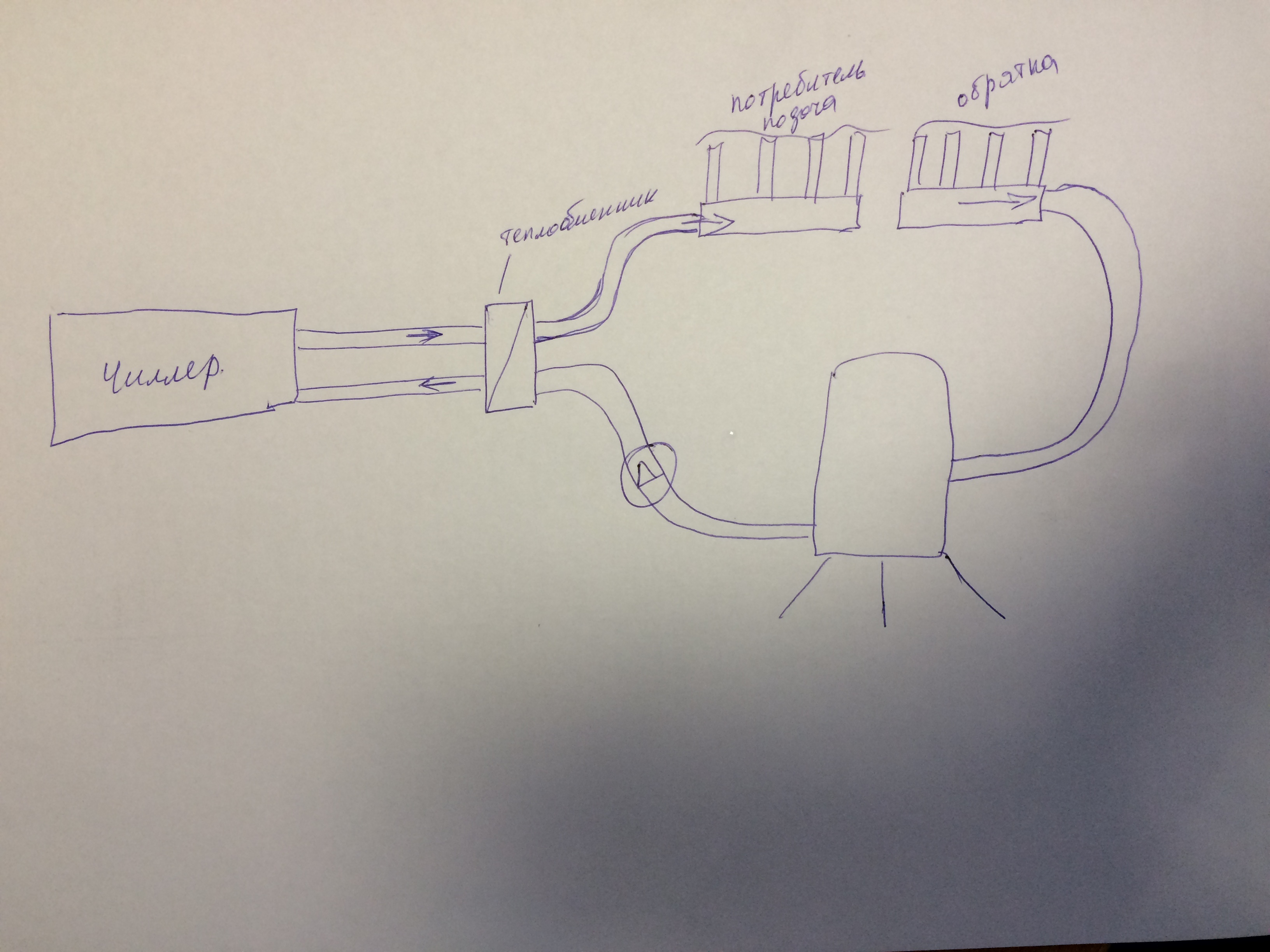 Второй вариант - посадить чиллер на теплообменник по схеме
