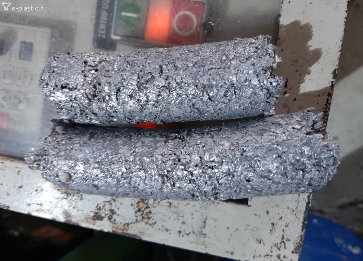 На 120кг гранулы отход алюминия с ПП примерно 18-20кг.Гранула вроде чистая алюминия в ней нету.
