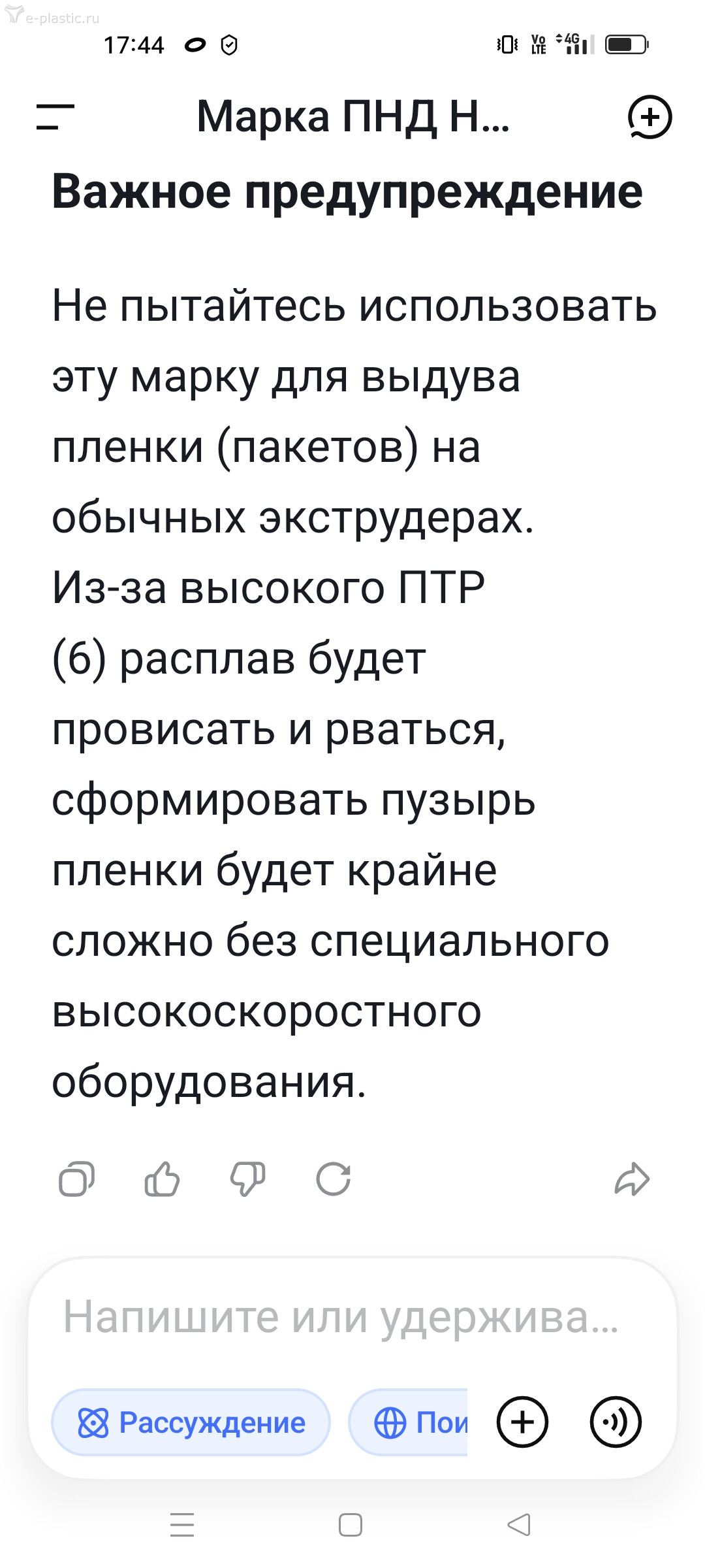 Farrier писал(а): 27 фев 2026, 11:07Бимодальность и "хорошесть" 80520 не гарантирует качество отдельной партии. Да режимы всегда надо подбирать.технолог54 писал(а): 25 фев 2026, 17:59 80520 очень хороший биомодальной структуры, поэтому говорить что вам попалась плохая партия неверно, просто после Лукойла нужно подобрать параметры этого материала.