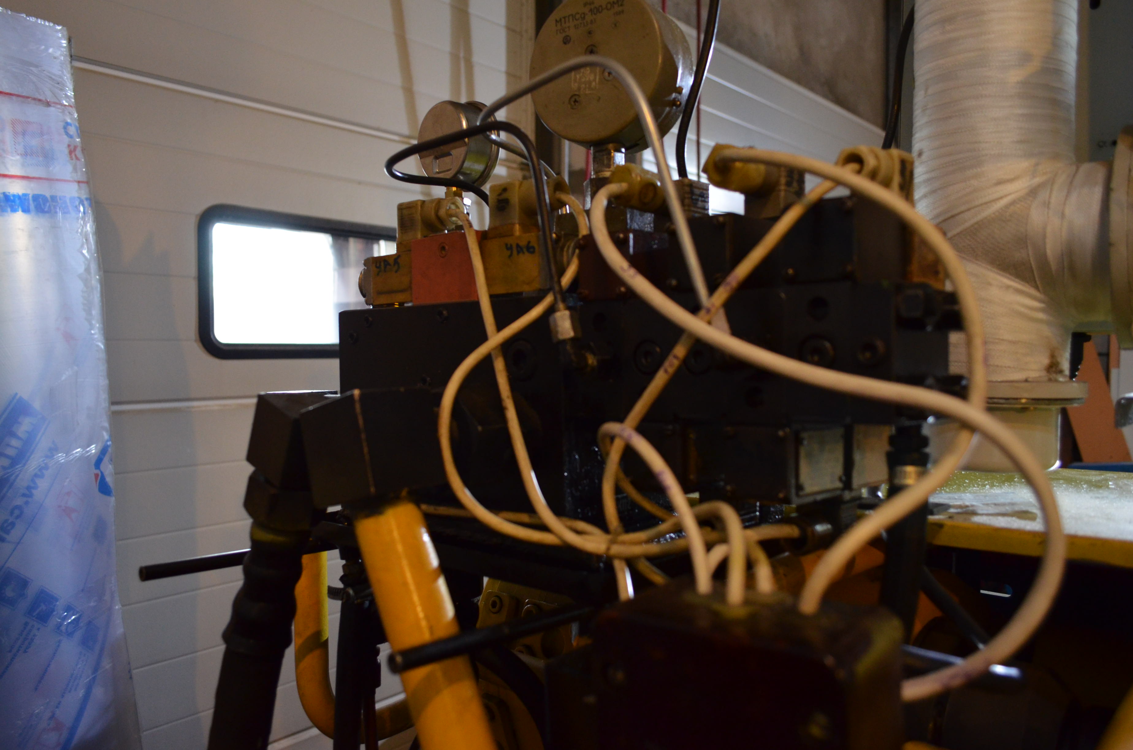 для этого необходимо 2 человек, один нажимает кнопку впрыска в наладочном режиме, другой крутит настроечные винты. Сначала нажимаем кнопку в верхнем ряду задатчика, допустим под номером 36, соответственно включается электромагнит УА36, включаем впрыск и винтом управляющего клапана устанавливаем давление 6.4МПа, контролируемое по манометру, контрим гайкой, отжимаем кнопку и переходим к другой. Опять регулируем давление клапана, отвечающего за определенный гидрораспределитель. Постепенно таким образом проходим все управляющие клапана, единственное, на манометре с большой шкалой тяжело заметить давление в 0.2 или 0.4МПа, для этого можно временно поставить другой манометр, соседний или отрегулировать эти ступени при работе загрузки на давлениях подпора.Значений давления для этой машины у меня нет. Они должны быть или в паспорте (ищите в сети) или (если родная панель задатчика) на панели задатчика давления под номером електромагнита (например под 36 у моей машины 6,4). В паспорте ищите не номера електромагнитов, а номера клапанов КП на гидроблоке впрыска.