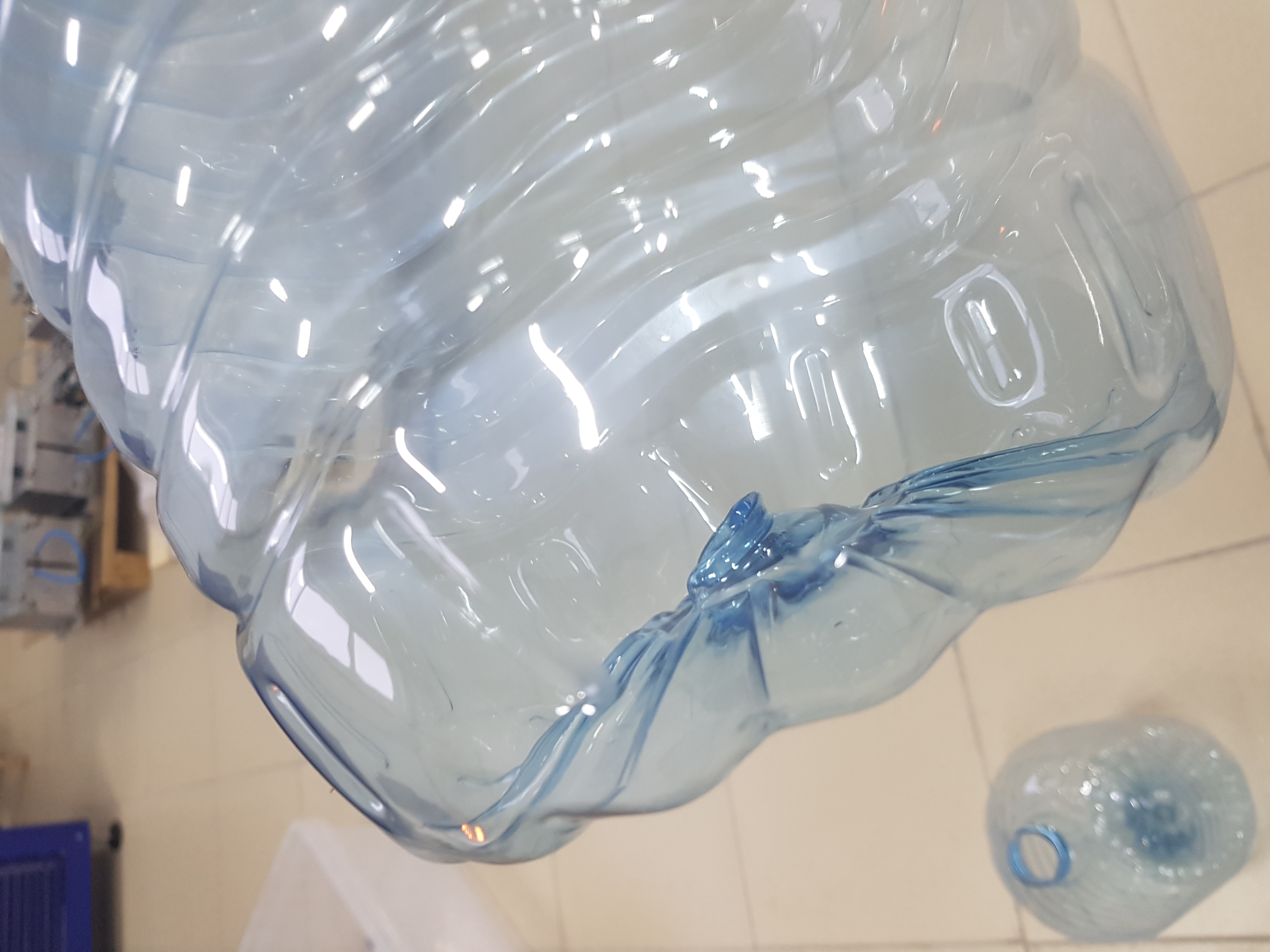Всех приветствую! Снова я)теперь у меня вопрос по 9литровым бутылкам. Как убрать эту складку? Пробовал герконом ПВ, то на горле такая складка появляется, то на дне, либо штук 5 относительно нормально выдувает. Давление на предвыдуве 5. Преформа пермская 150гр(ПЛАСТ-М)