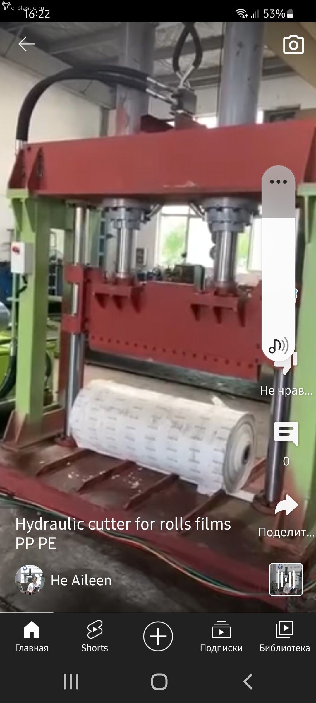 Такое имеется. Но имеется желание опробовать именно подачу пленки непосредственно в дробилку.zhdanoff888 писал(а): ↑15 апр 2022, 07:08Другое решение. Гидравлическая гильотина. Резка рулона и выкладывание листа на конвейер перед дробилкой.