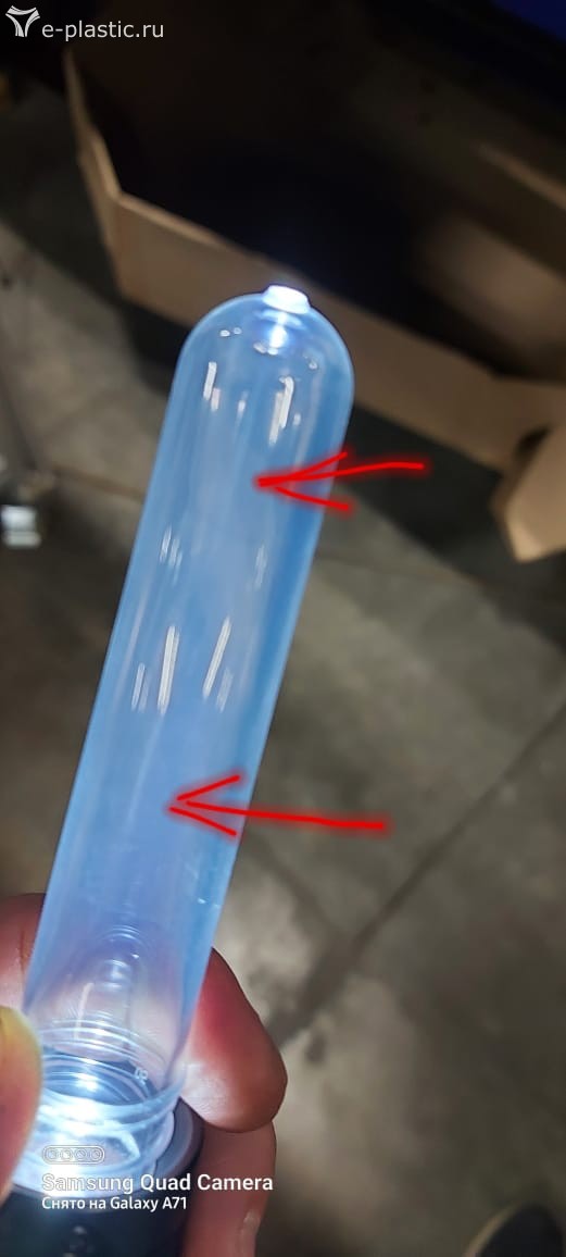 В Здравствуйте, в чем может быть причина подобных дефектов(полоса вдоль тела проформы)