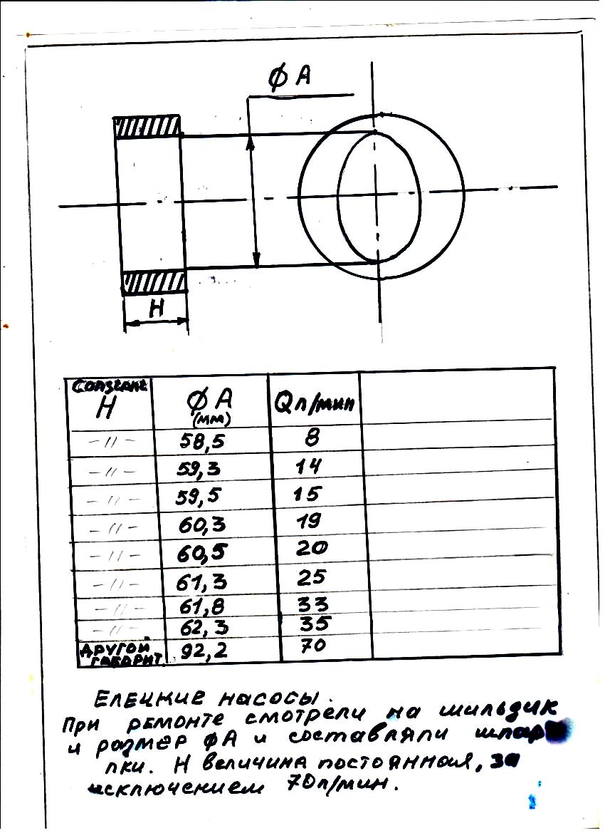 ЛОЖКА ДЕГТЯ в бочку меда:::::Мой взгляд на выбор насоса из г. Ельца: Насос 33/33 л/мин. 1500 оборотов. находится в высшей строчке своего габарита, а это значит он имеет максимальный элепс статорного кольца при работе на ТПА износ такого выбора происходит быстрее из-за экстремальных условий для работы пластин. Если взять второй габарит, то элепс гораздо меньше при следующем литраже по таблице и срок службы при равных нагрузках и времени эксплуатации будет больше. От куда взял? Из опыта эксплуатации. При модернизации в свое время КУАСИ первого покаления брали комбинацию двух поточного насоса 19/56. 25/56. на машины 260/100 Куаси насос 25/70 л/мин. Большой насос для скорости , малый на силовые моменты : 1.запирание. 2. Выдержка под давлением. Считаю 33/33 л/ мин. не удачное решение насоса для Хмельницких ТПА . Что и показала практика. Машины хорошие, все одно что танк Т-34. Но насосы Ельца -СЛАБОЕ звено. Этот пост к Чикману не относится, тут свой расчет и цель понятная. ПРОСТО мое мнение. По элепсу посмотрел разницу в размерах 19 литров 60,3 мм -33 литра 61,8 мм. Про экстрим пластин вроде и ошибаюсь. Но моторесурс ни куда не годится.