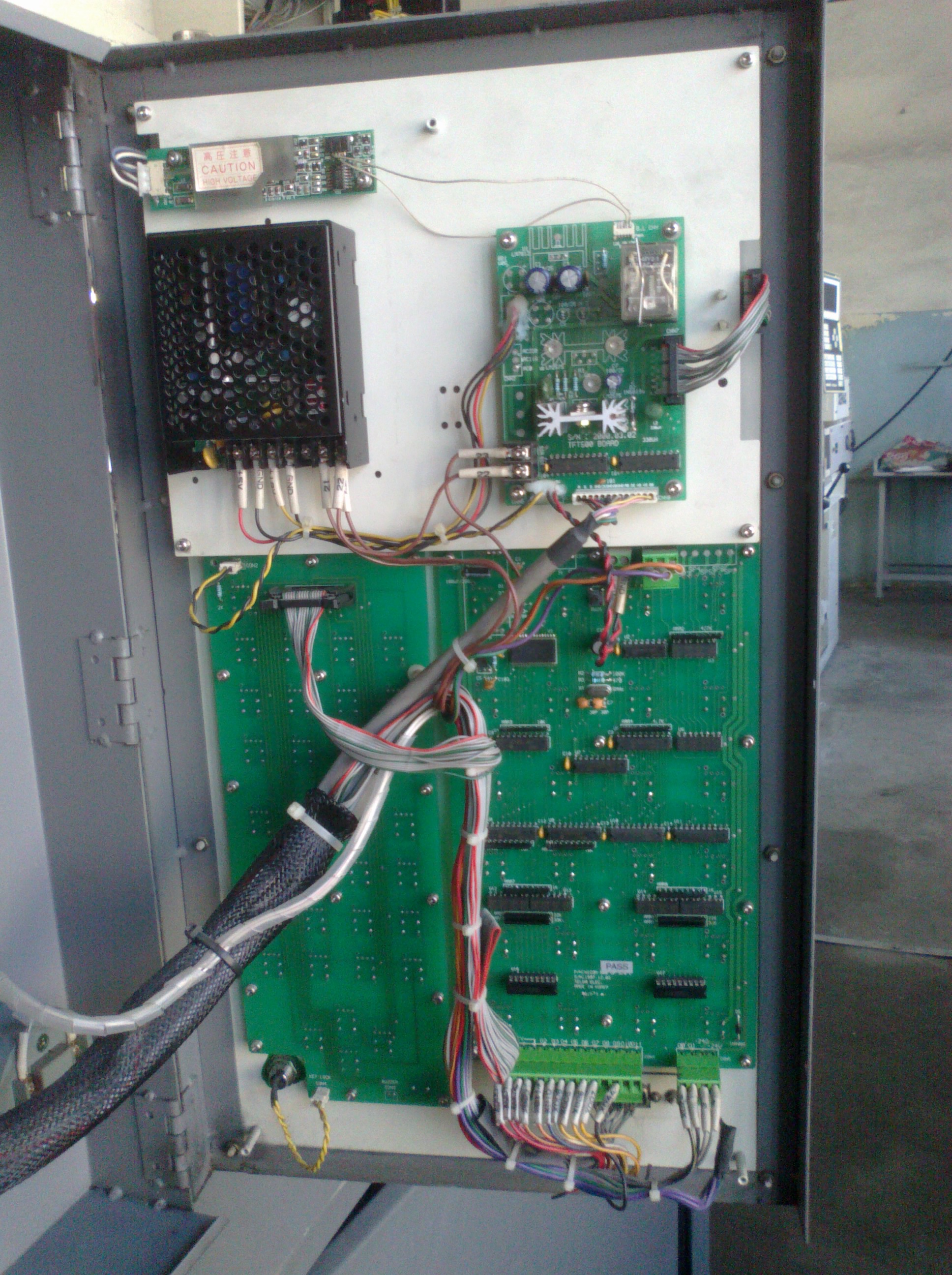На монитор идет кабель как раз с той платы где 15-ти пиновый разъем(с него). С других двух разъемов идут кабеля на клавиатуру и кнопки на панели. Они работают. Маленькая плата на самом