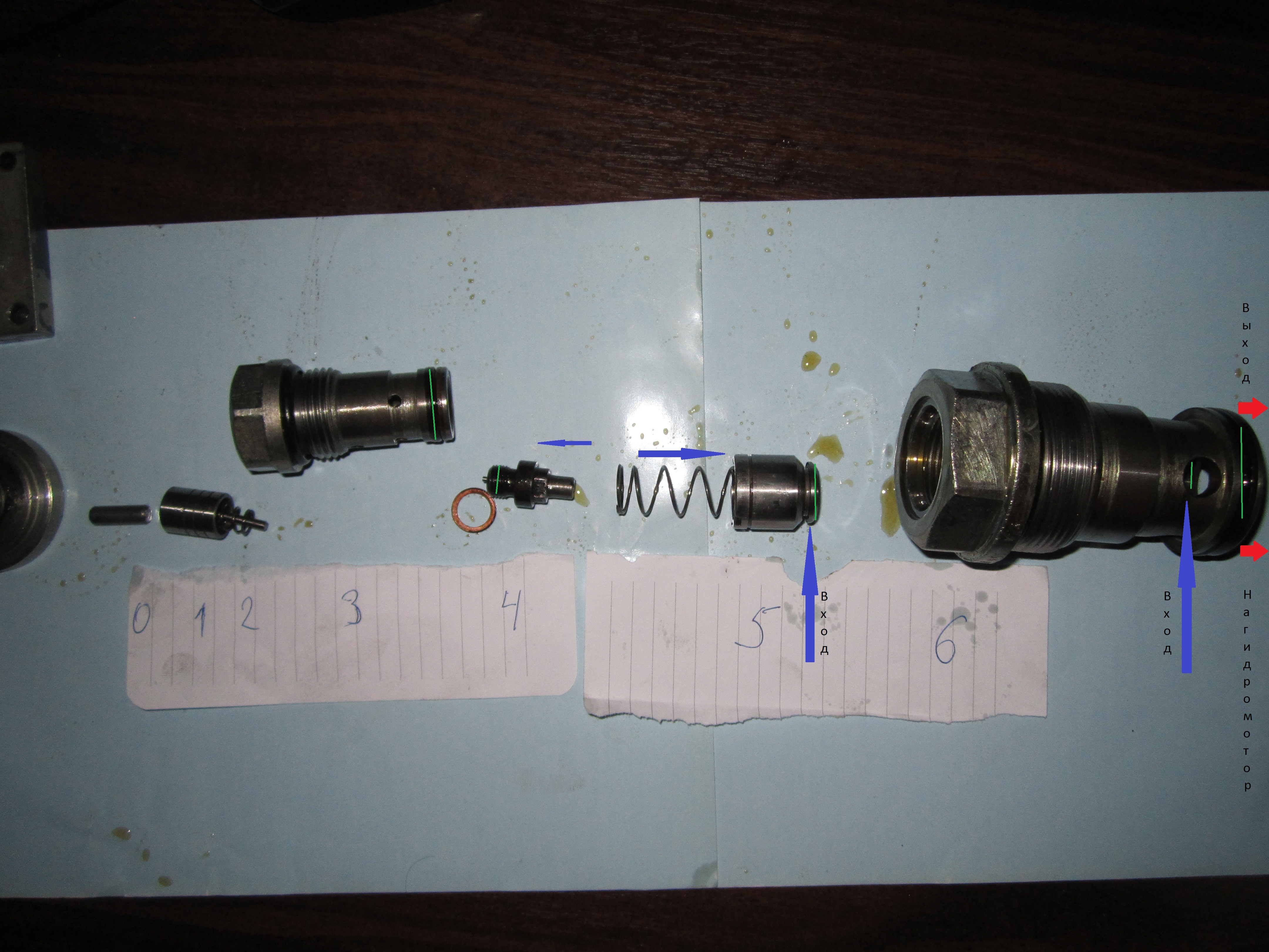Как я понял у меня через обводной канал давление приходит на поршень 5,и перекрывает подачу из за маленького отверстия на слив.