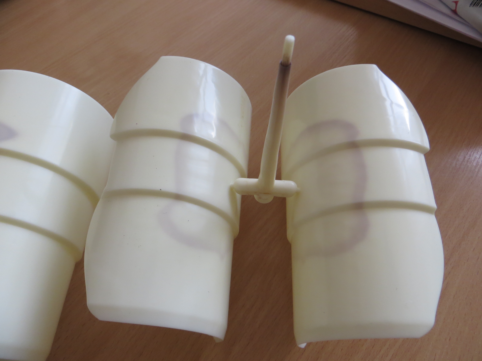 На рыжих изделиях материал сгорел уже в цилиндре ТПА. Температура в цилиндре у нас не превышает 190 С . Обычно 184 С предел.