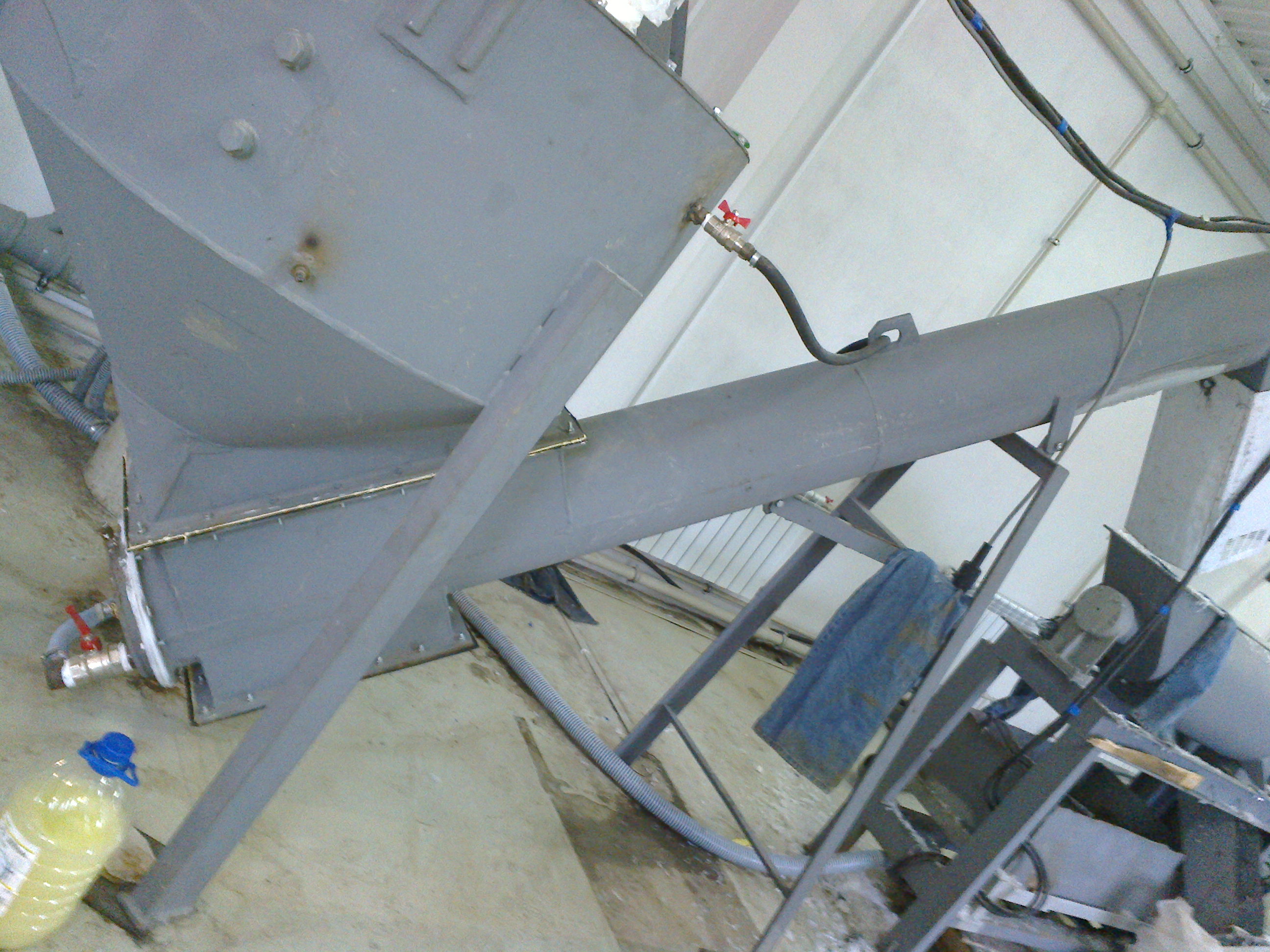 2. Выгружной шнек из мойки в центрифугу, не имеет воронки для отвода воды, она должна быть в том месте где на нем свежая краска.