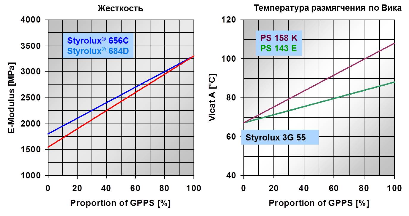 (для справки: в номенклатуре марок полистирола BASF вторая цифра – относительные механические свойства (определяет молекулярная масса), третья – теплостойкость (определяет содержание масла))