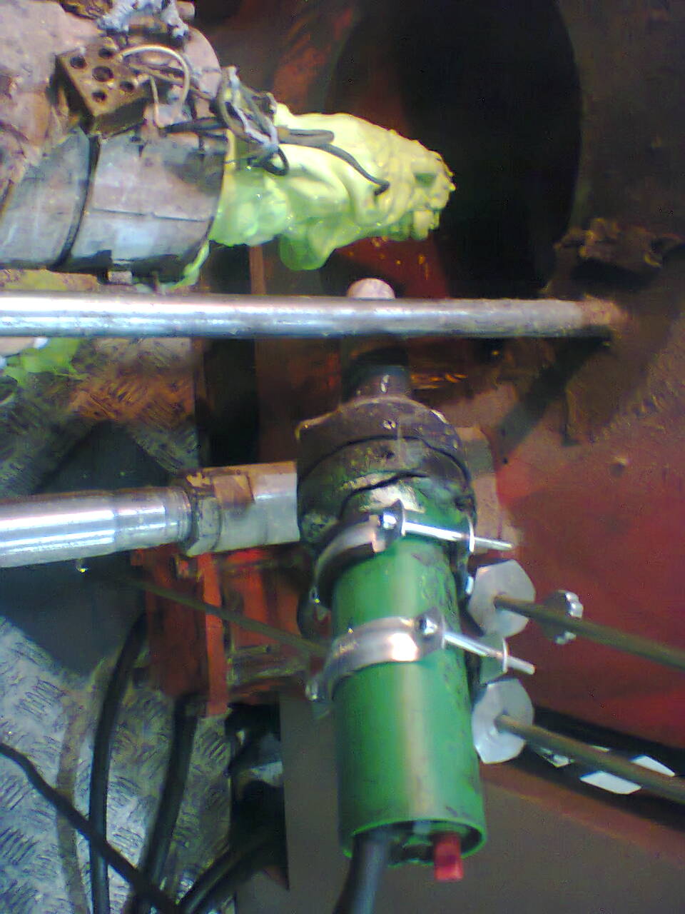 При проверке охлаждение зоны бункера работало так. Или по другому ни как. Завтра начнем ковырять. Без всякой химии. Химия эффективна когда есть хотя бы хилый проток по контуру. Почему заостряю внимание на этом вопросе? Потому что порой нужно совсем не много времени на очистку кольца охлаждения этой конструкции. После попытки ремонта ,отпишимся с фото. судя по количеству пробок даже и не сообразишь как циркулирует вода. Будем соображать совместно с чисткой и продувкой каналов.