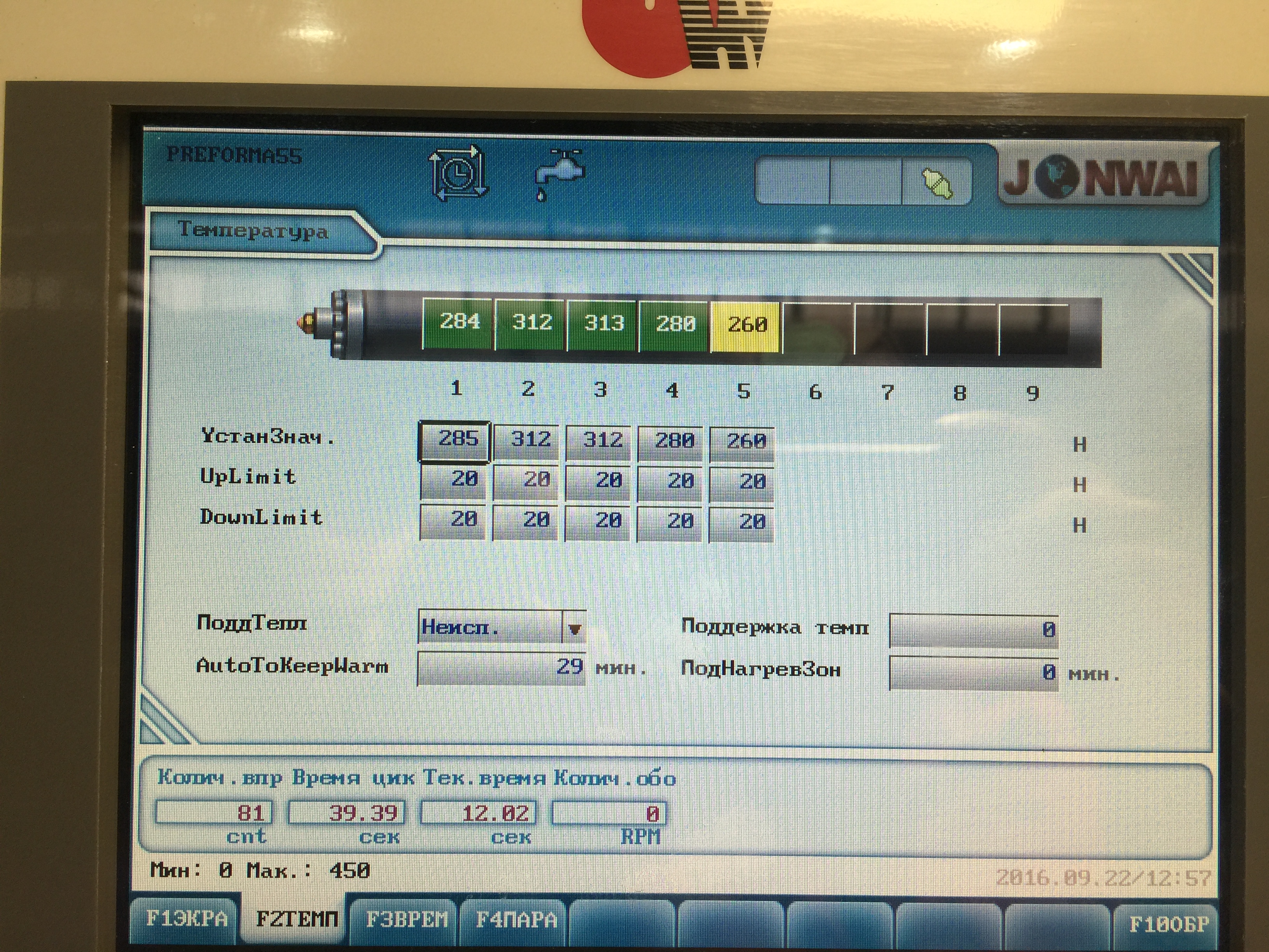 Данные режима на 5 С увеличины по отношению к тонкостенной преформе,