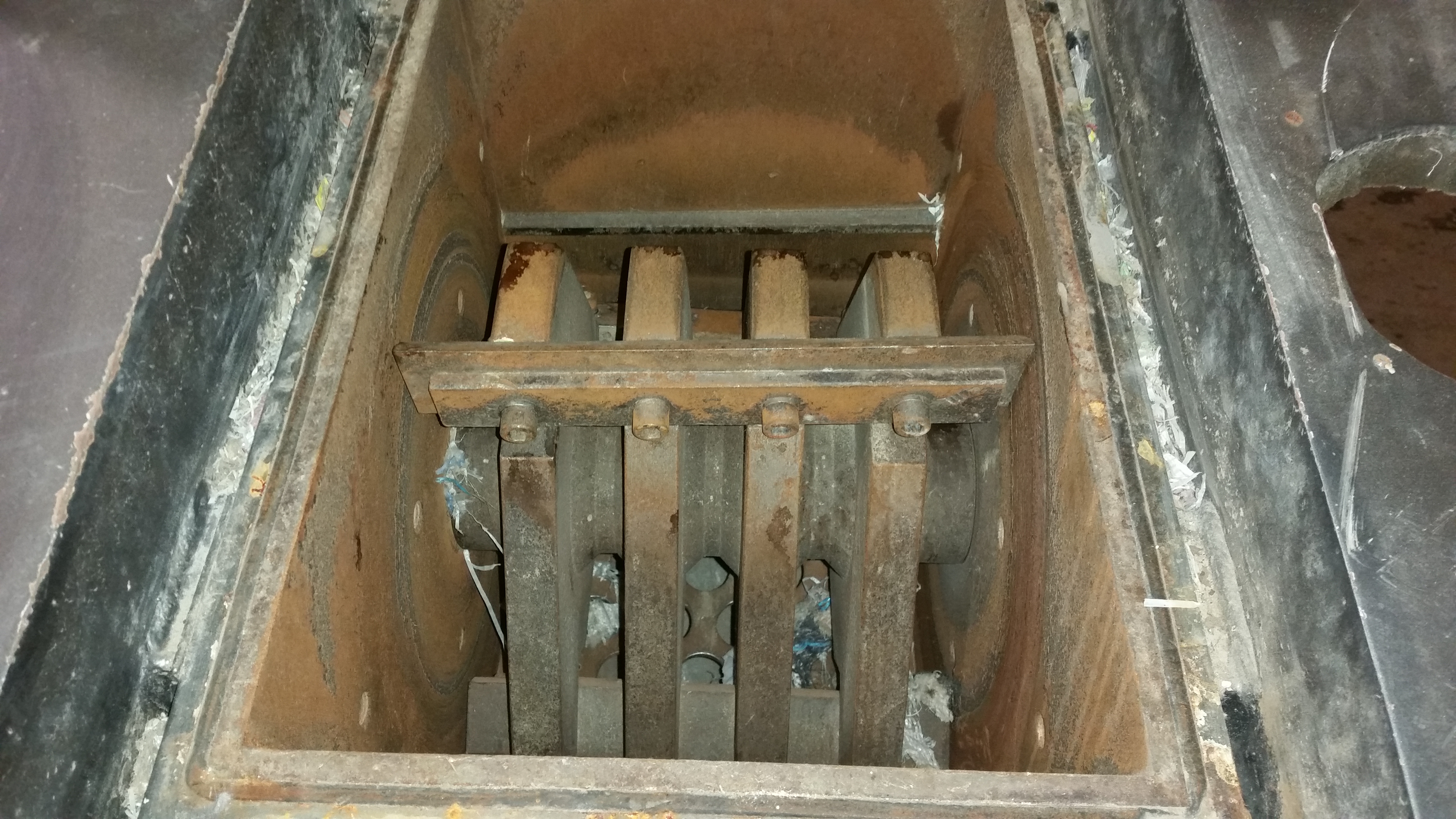 Загрузочные окна закрыты звукоизолирующим материалом для уменьшения уровня шума. Для предотвращения обратного выброса пластика предусмотрены затворные отражатели в устье окна.
