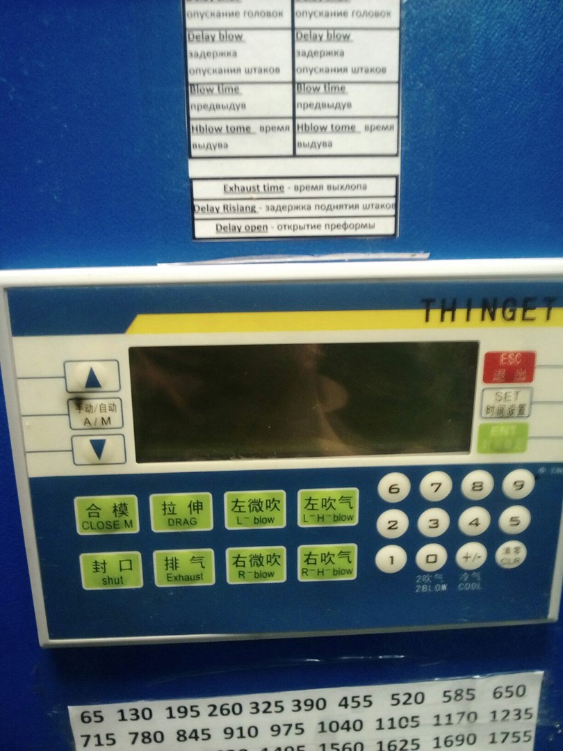 Работаем на китайском полуавтомате, пресс-формы 2-х гнездные, объем бутылей 0,5л, 1,0л, 1,5л.