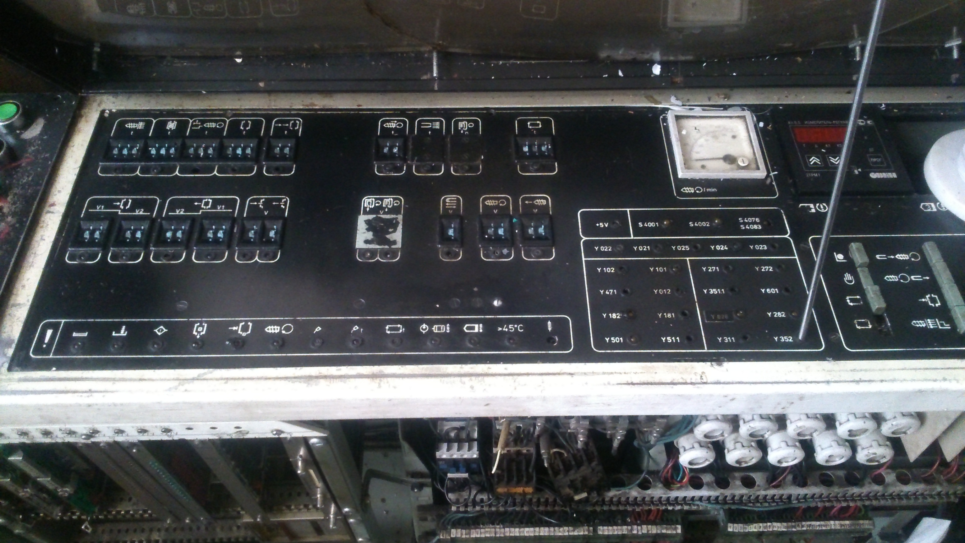 Здравствуйте форумчане. Такая проблема приключилась со станком - После простоя на ремонте гидравлики, перестал останавливать сопло при подводе, давит до упора. БВК рабочий, сигнал приходит на плату (режим полуавтомат). В ручном же режиме не останавливает закрытие плиты, уперся и давит, хотя в полуавтомате проходит этот шаг. Замечено - отсутствует напряжение на F320 (27V).