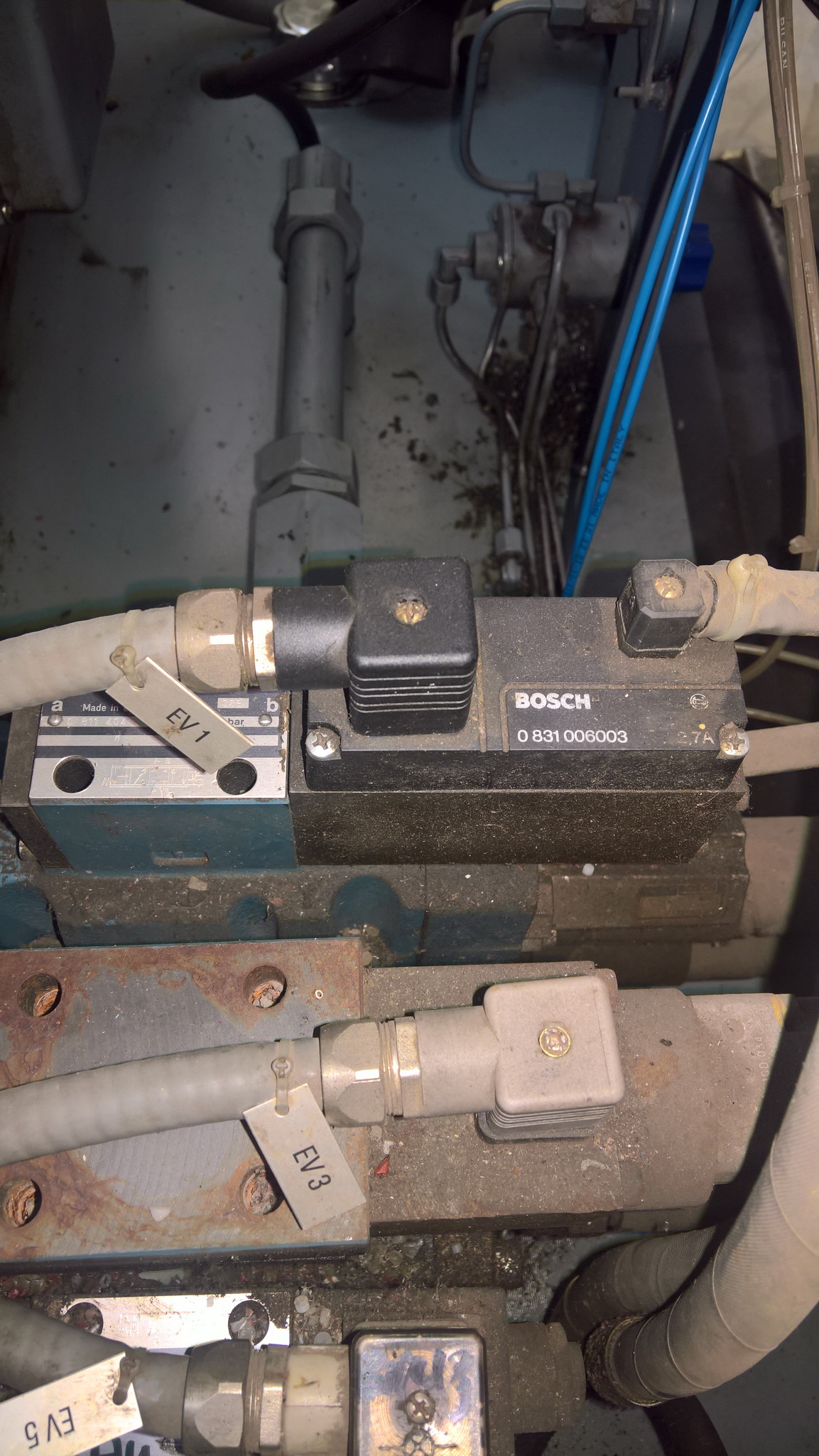Итальянцы выслали электросхемы и гидросхему на данный станок. В гидросхеме вместо клапана 0 811 404 033 указан клапан 0 811 404 210. На электросхеме вместо установленной в станке платы B 830 303 170 указана плата 0 811 405 013. Схема подключения платы 0 811 405 013 указанная в электросхеме не соответствует реальному подключению проводов к плате B 830 303 170.