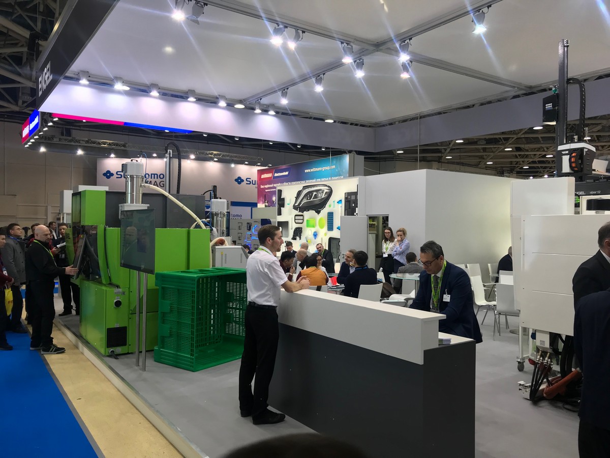 Хорошее впечатление осталось от стенда Negri Bossi, литьё ПБТ с газом и ПУ в виде ракетки для настольного тенниса.