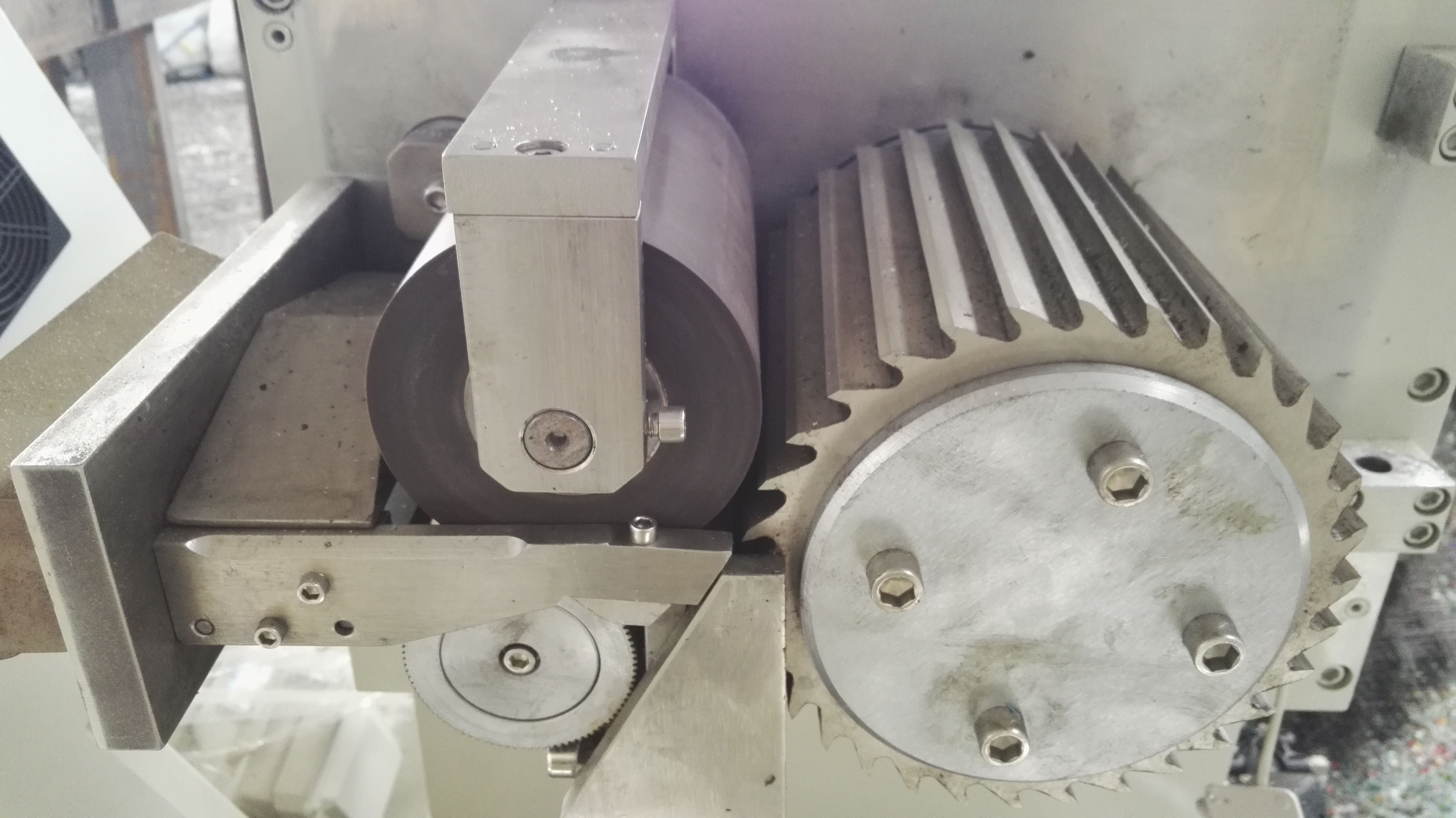 Суть вот в чем: Имеется стренгорезка для гранулятора ПЭ с пневмоприжимом и частотником, производительность до 700 кг/час, мощность двигателя 11 кВт. Поставили ее в линию и подключили, все вроде шло хорошо, но через какое то время начинает останавливаться, т.е. не сама резка, а не тянет стренги к ножу. Стали наблюдать в какой момент происходит сбой в работе, тоже четко понять не могли. Как вариант увидели, что верхний (прижимной) вал прорезиненный намокает, т.к. стренга идет влажная и обдув не справляется полностью, нижний вал как обычно с насечкой.
