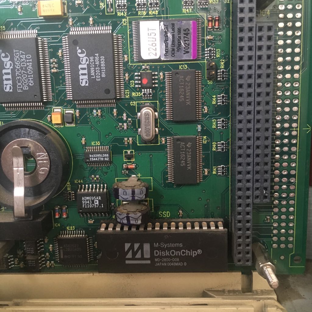Ежели учесть что детальки на плате сделаны в начале века и производитель DiskOnChip в 2006 году продался другой фирме - то найти замену скорее всего нереально ....