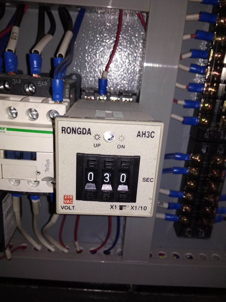 Могу предположить, что таймер ограничивает время включения пускателя (аварийная защита).