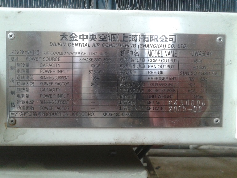 В связи с тем, что свернули программу производства полипропиленовых труб, продаём оставшееся оборудование, в том числе и чиллер Daikin UWA60AY 160 кВт, 2005 года.