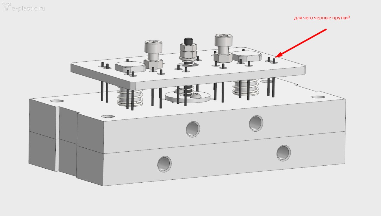 Почему стержни без шляпок? Они должны между двумя плитами прижиматься. Шляпки с одной стороны срезаны. Такие же посадочные места. Чтобы не прокручивались.