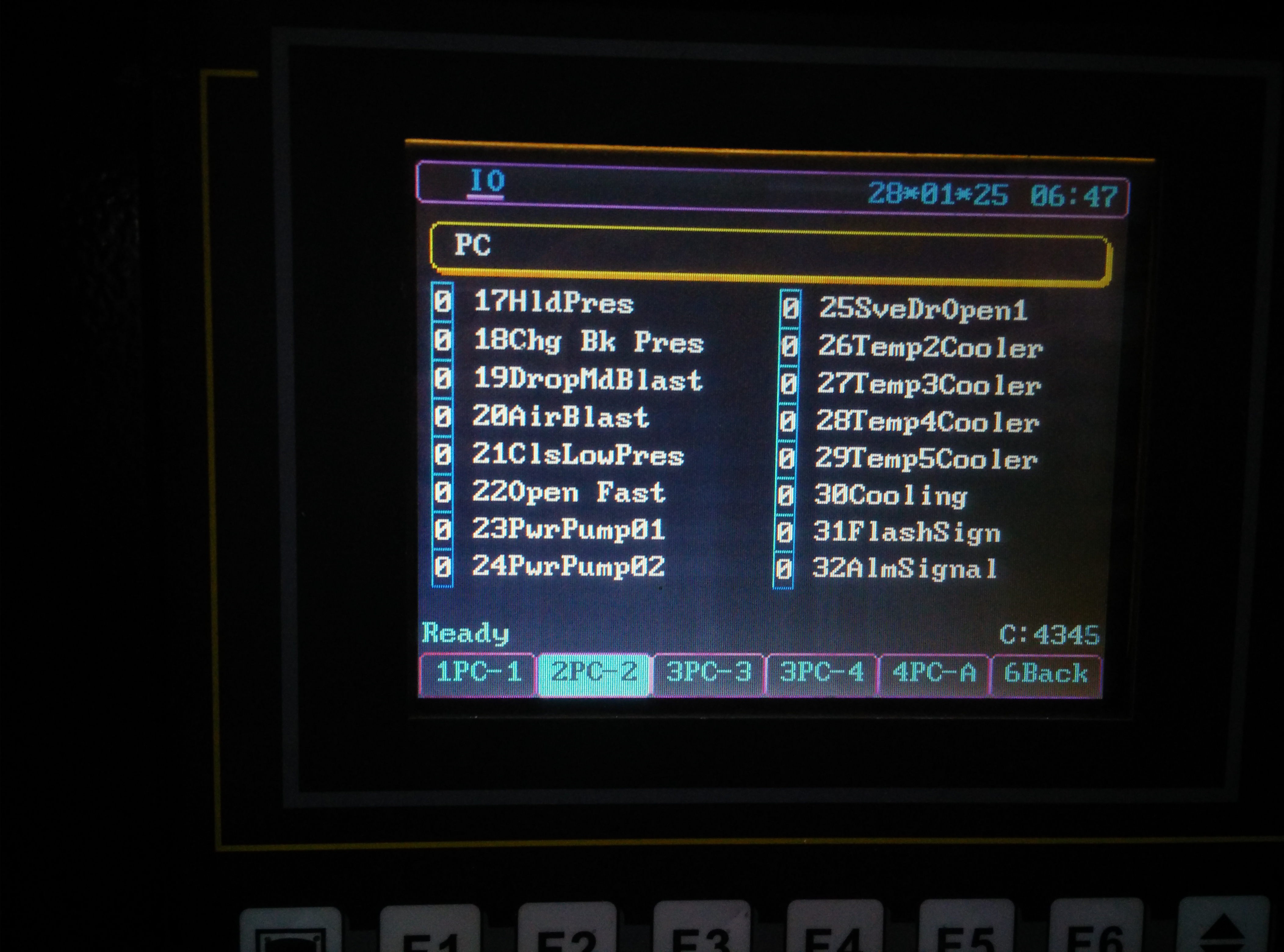 По выложенным фото Входов-Выходов попробую сделать перевод конфигурации, поддержанной программой. На мой взгляд, самый интересный для вас вход - это PB2-19 (Check Unit Position) download/file.php?id=24422&mode=view К этому входу подключаются (если сейчас их нет) рефлекторные фотодатчики определения выпадения изделия из формы (одиночного). Здорово облегчает работу оператора, давая ему возможность обслуживать 2-4 станка. Рекомендую перед подачей в контроллер "расширить" сигнал с фотодатчиков при помощи таймера на 24 В (0,2 - 0,5 с). Это даёт отсутствие ложных тревог контроллера на мелких/тонких/сетчатых изделиях. Ложные тревоги нервируют операторов и малоопытных наладчиков.