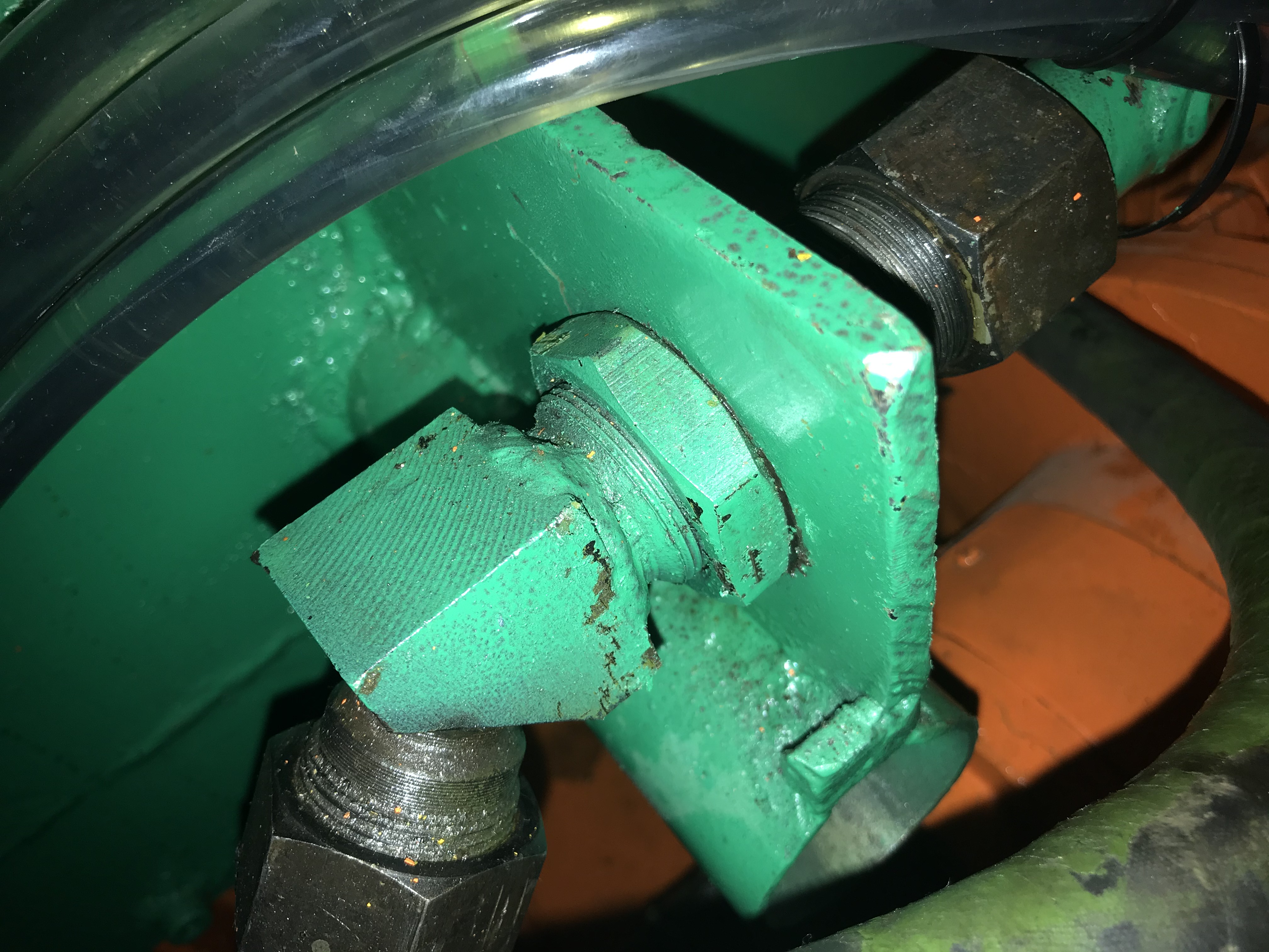 Всем спасибо за участие, проблема решена. Дело оказалось в незатянутой до конца гайке на фото. От давления при впрыске она ударялась в отверстие и казалось что удар при впрыске. Затянули гайку и все прошло. Тему можно закрывать.