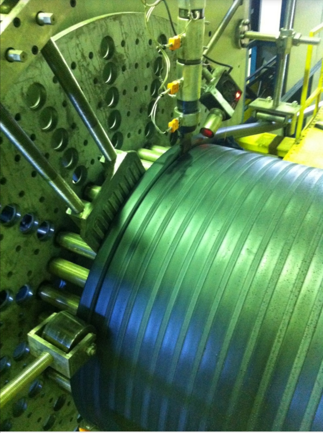 У нас линия с другим принципом работы, где готовый профиль навивается на барабан, а соэкструдер уже спаивает между собой витки