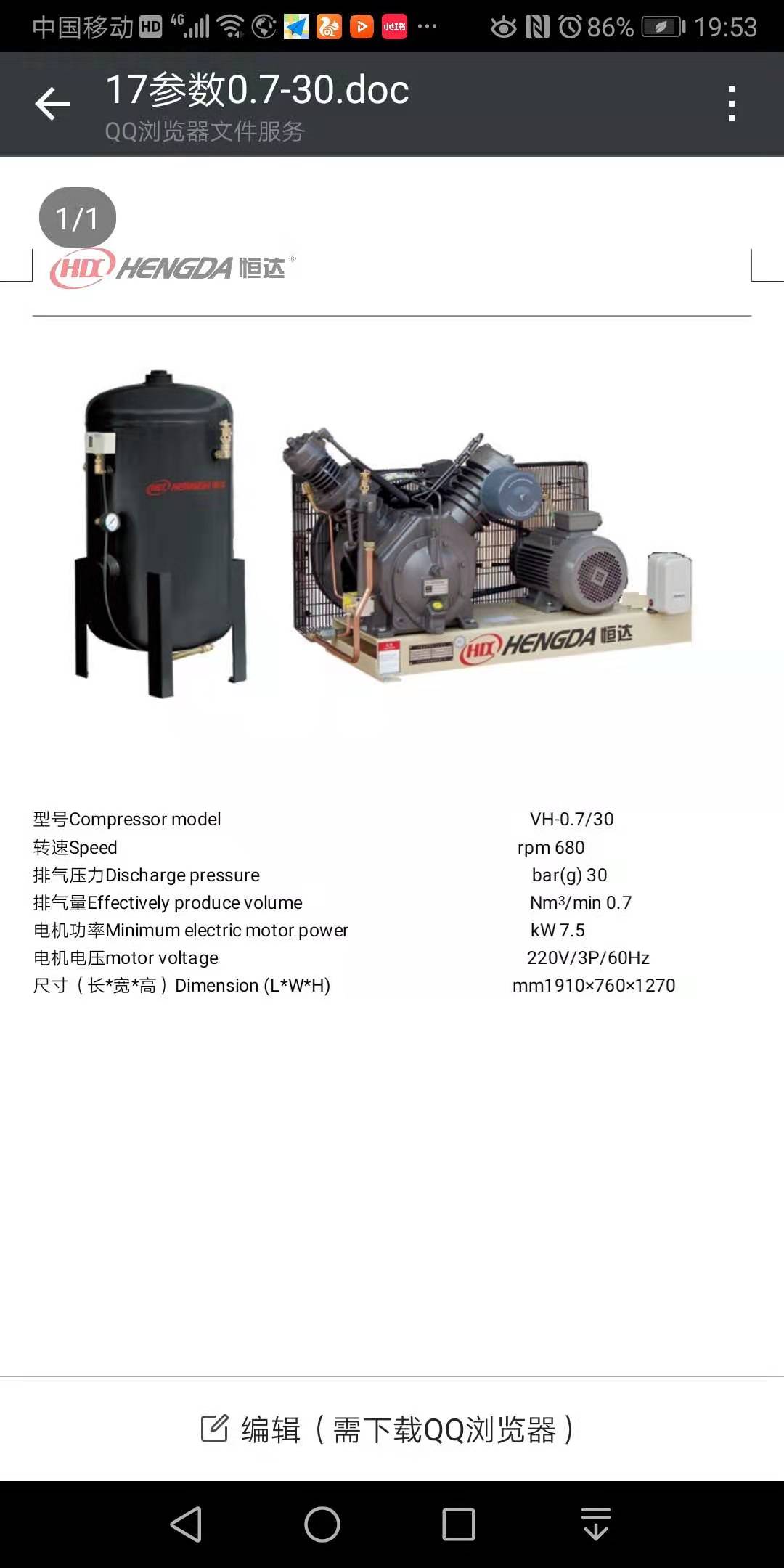 - Производительность компрессора 7.5Kw, 30 бар, 0.7м³.(фото прилагается).