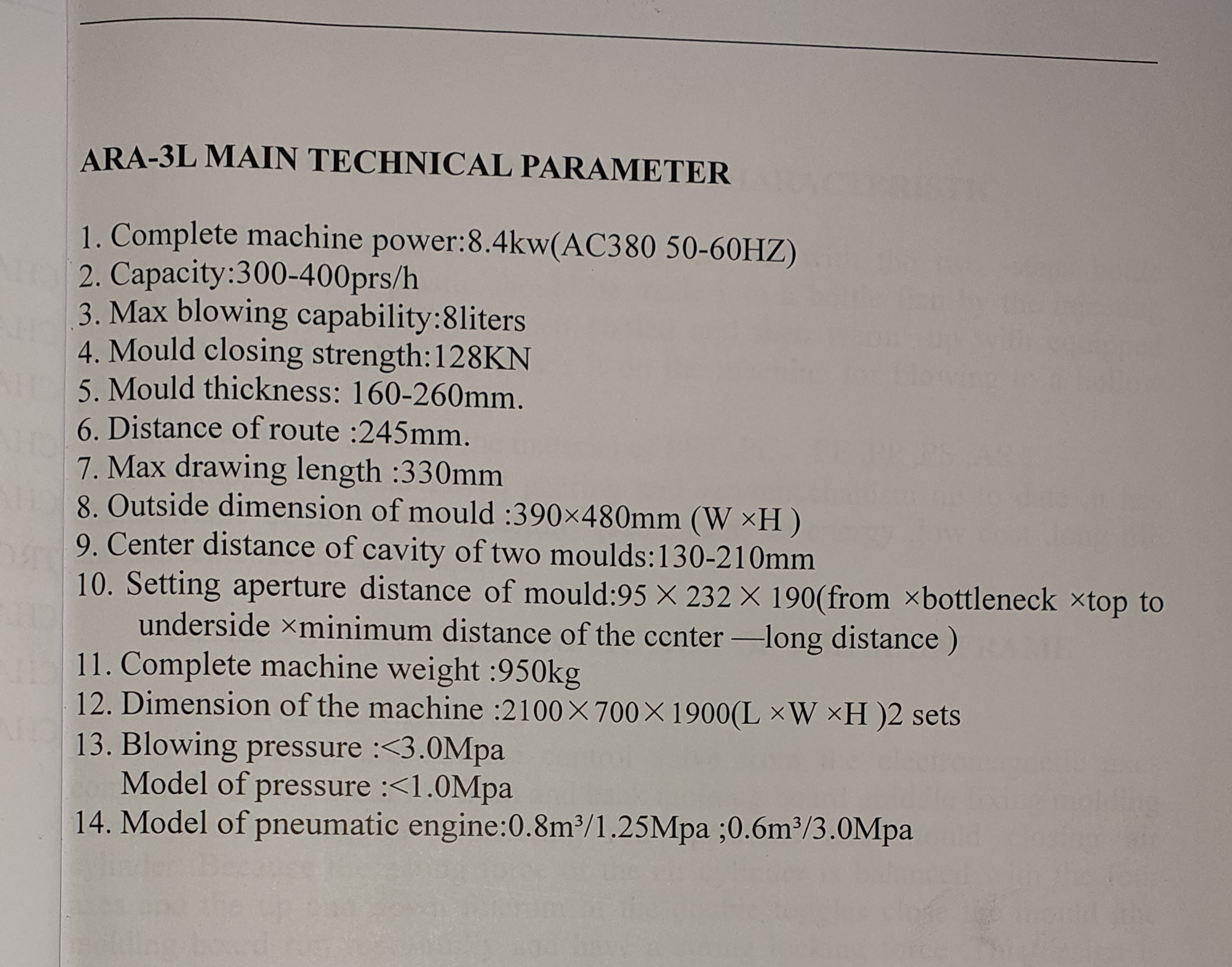 2. Предвыдув - регулируется в зависимости от требований к бутылке, типоразмера преформы, особенностей готового изделия, в подавляющем большинстве случаев в пределах 4-12 бар.