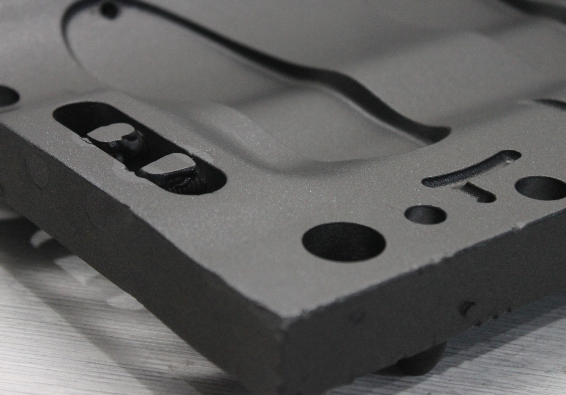 Полированные пресс-формы после пескоструя тоже станут матовыми - но после нанесения покрытия прежняя гладкость к ним вернется.