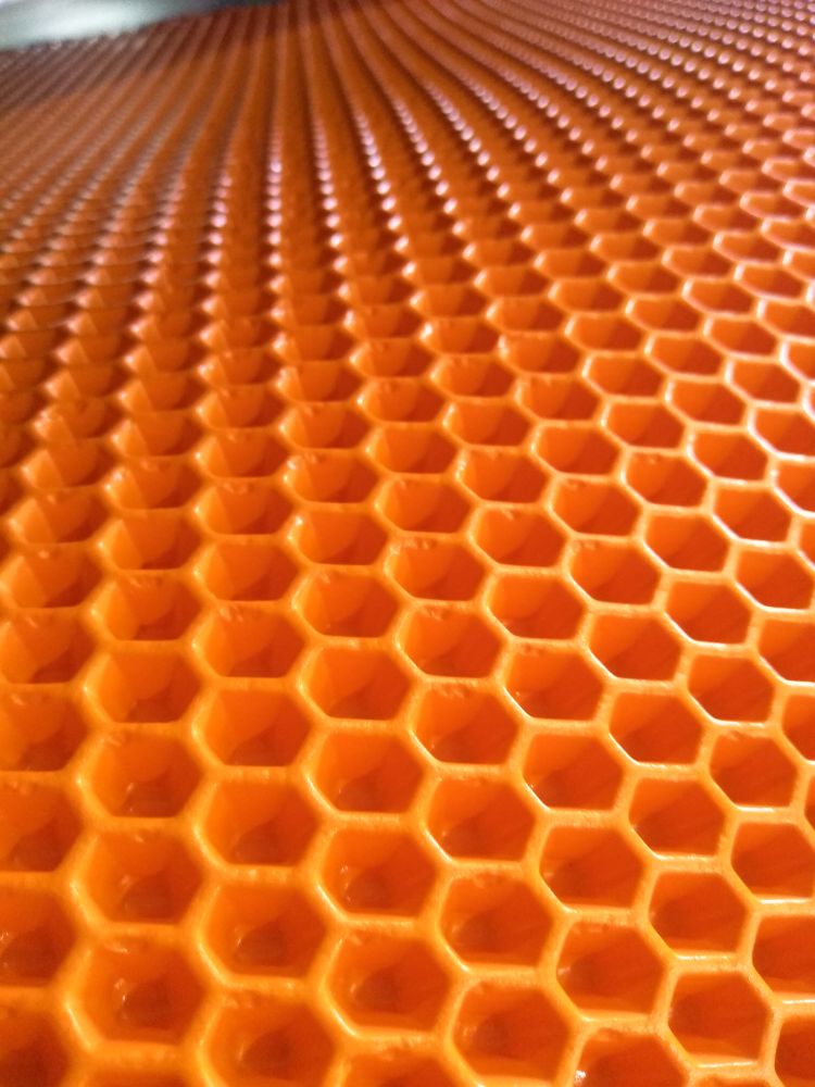 Мы нашли фото одного из нашего заказчика для Вас. Они не совсем про обувь.. это другое изделие (коврик), но материал изготовления такой же. На фотографии видно, что в связи с налипанием полимера к пресс-форме возникает брак продукции. Применяемые нами покрытия позволяют исключить эту ситуацию.