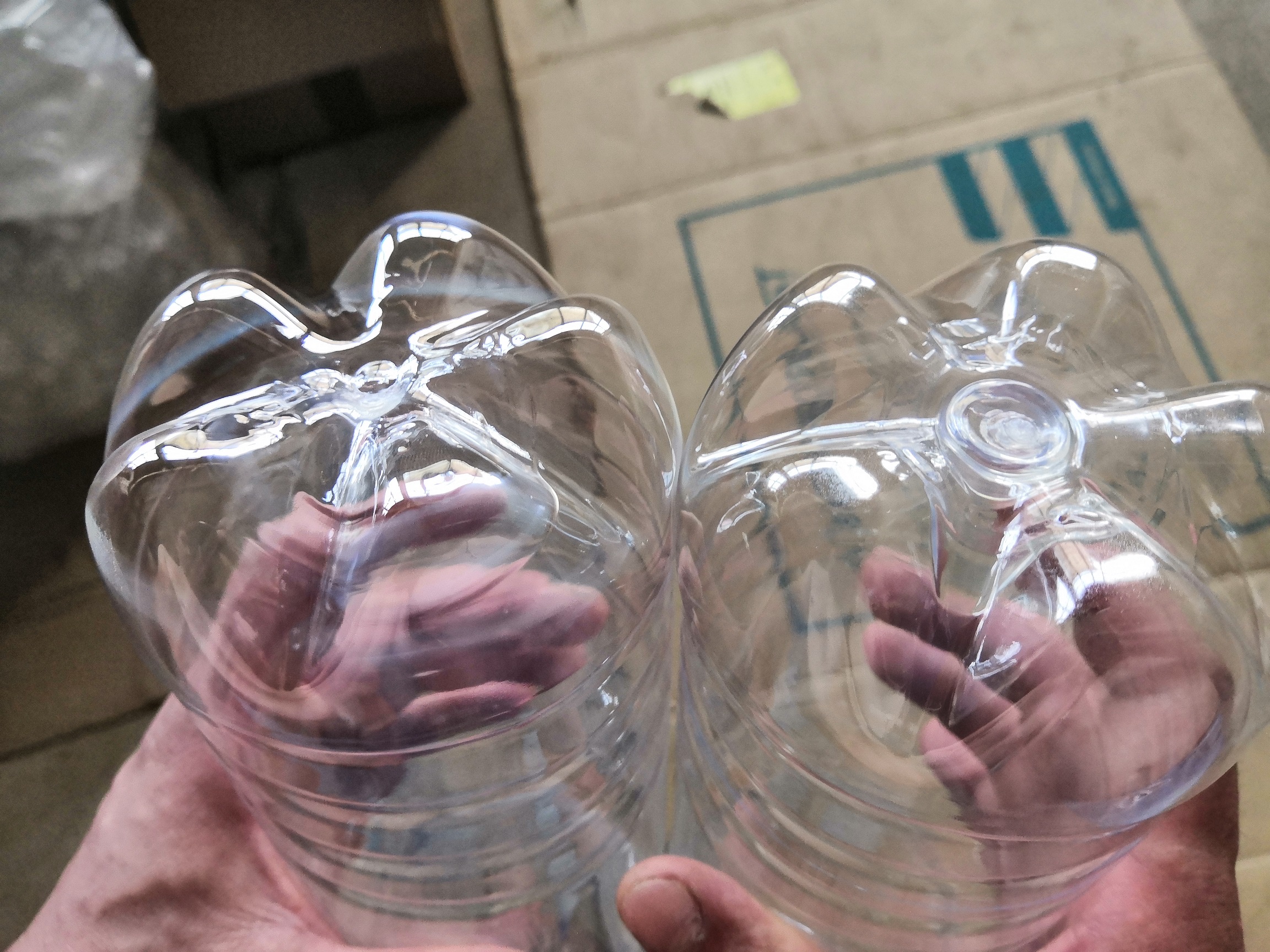 Всех приветствую! Снова я)теперь у меня вопрос по 9литровым бутылкам. Как убрать эту складку? Пробовал герконом ПВ, то на горле такая складка появляется, то на дне, либо штук 5 относительно нормально выдувает. Давление на предвыдуве 5. Преформа пермская 150гр(ПЛАСТ-М)