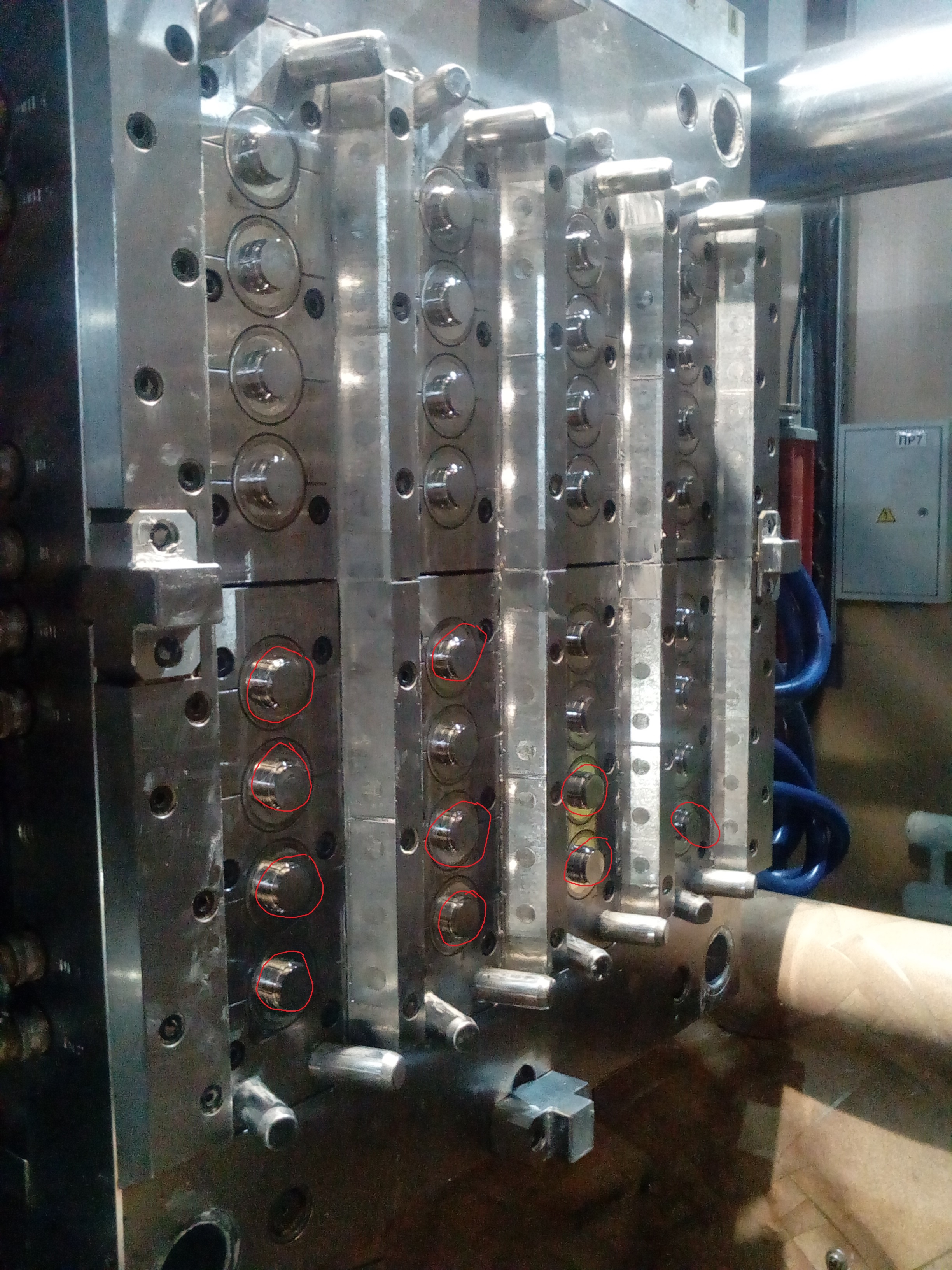 На фото пресс-формы я отметила позиции на которых как раз не доливает клапан.