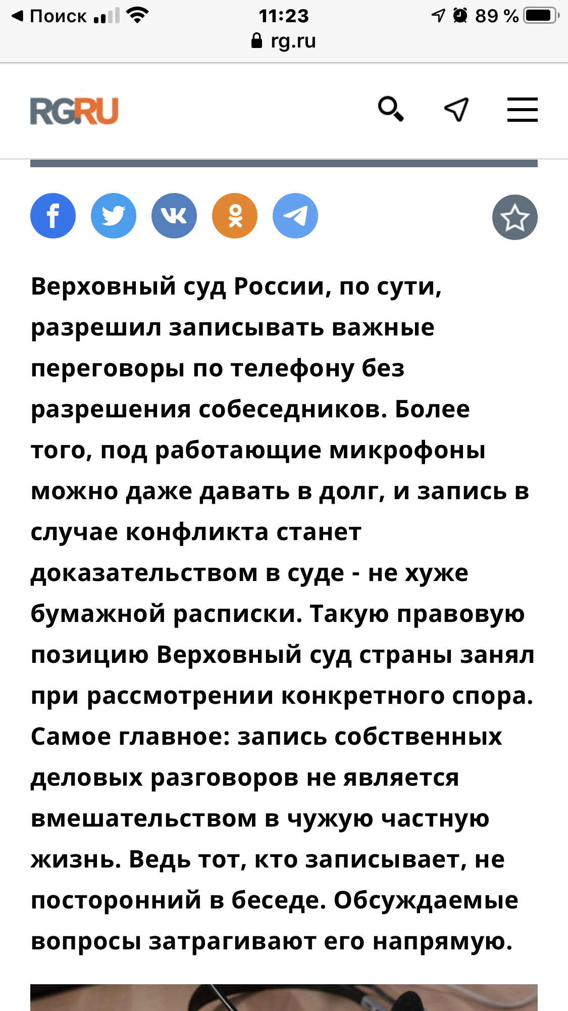 И ещё один пункт. Там выше вы писали про запись телефонного разговора. Как это вообще законно? Я опять о тут. В суде , если мой адвокат такое предъявит , а он это не сделает конечно, адвокат соперника в ладоши захлопает и представит встречный иск. Запись телефонного разговора , без согласия другой стороны запрещена и карается. И не в коем случае не проходит как доказательство. Может конечно в России по другому.
