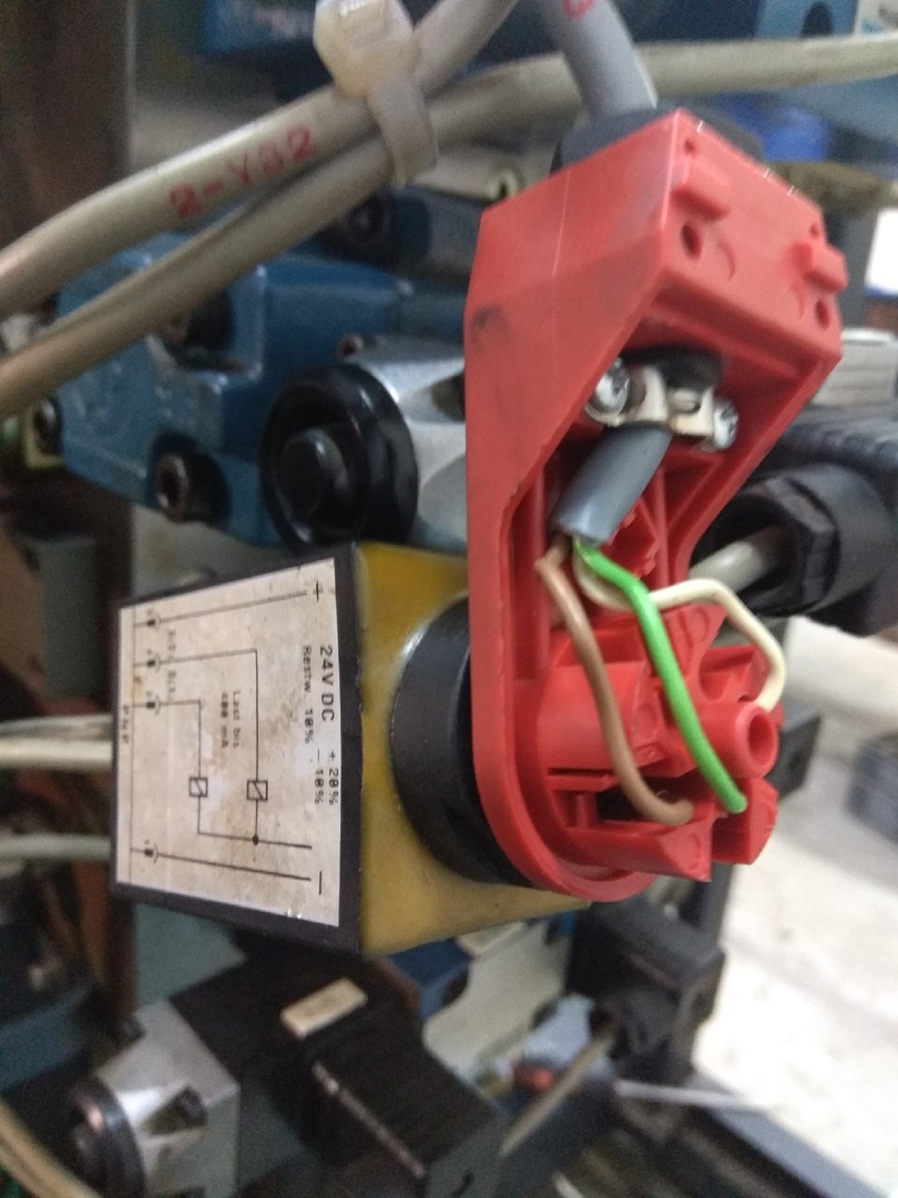 Теперь, как все это работает. Ко входу 1.05.01 через диод подключен датчик вращения шнека 4-B16. По нему оценивается скорость его вращения. Сюда же подключается через диод 2-S103. Включено по "или". Питание на него приходит с выхода 1.06.10 "Форму разомкнуть", а именно с 2-Y2. Вот здесь то собака и порылась. 2-S103 ничего не выдавал. Этот датчик стоит на распределителе 2-SH9. По сути он контролирует включение магнита 2-Y9.