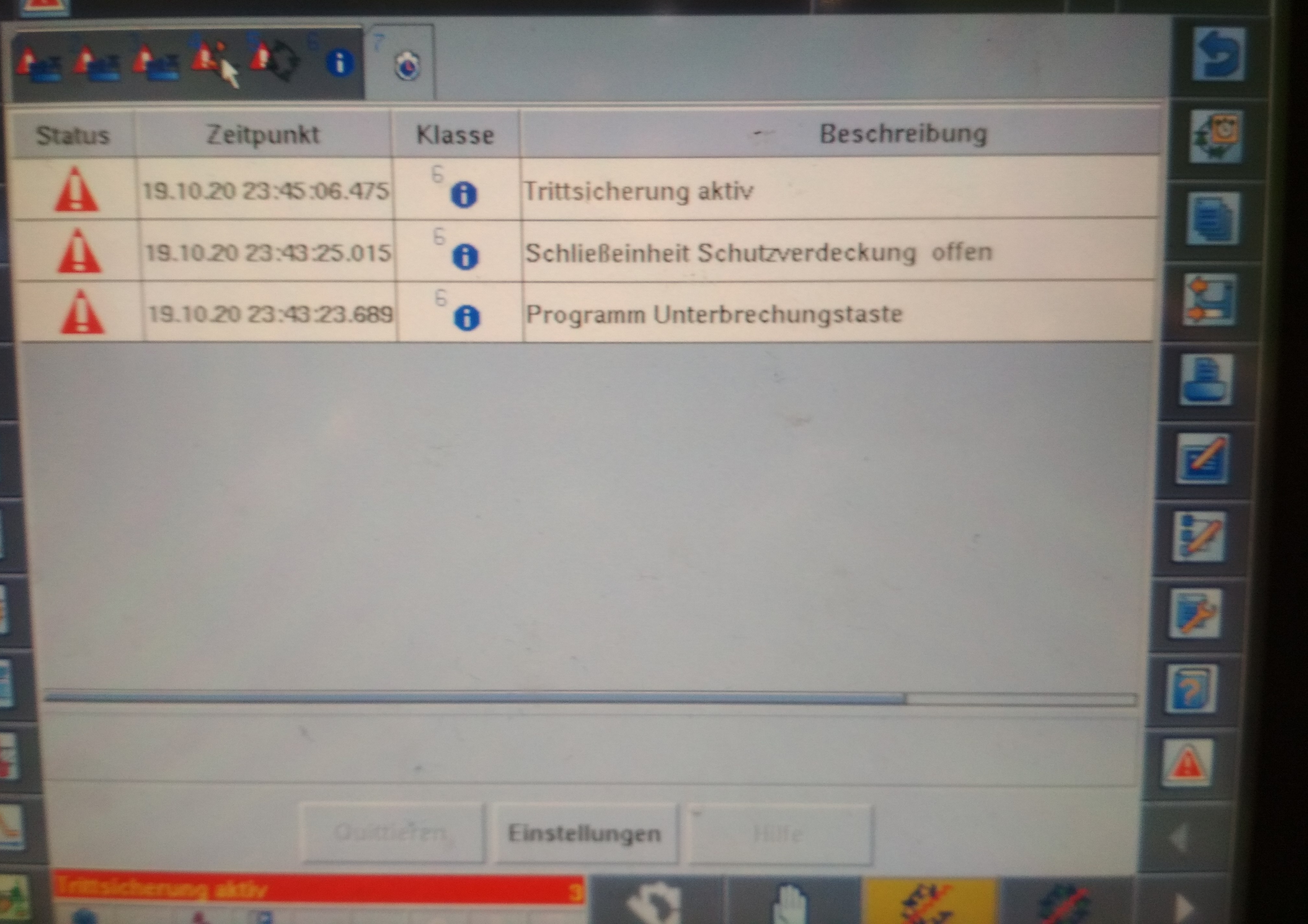 Ели я не ошибаюсь, это ещё cc90. У нас таких старых нет. Что касается ошибок, Schutzgitter у них может быть любая дверь . Передняя, задняя . Там ещё со стороны толкателя скорее всего тоже. И даже защитный кожух на сопло , там тоже концевые, может так называться. Там случайно клетки для робота нет? Бедный короче немецкий язык.