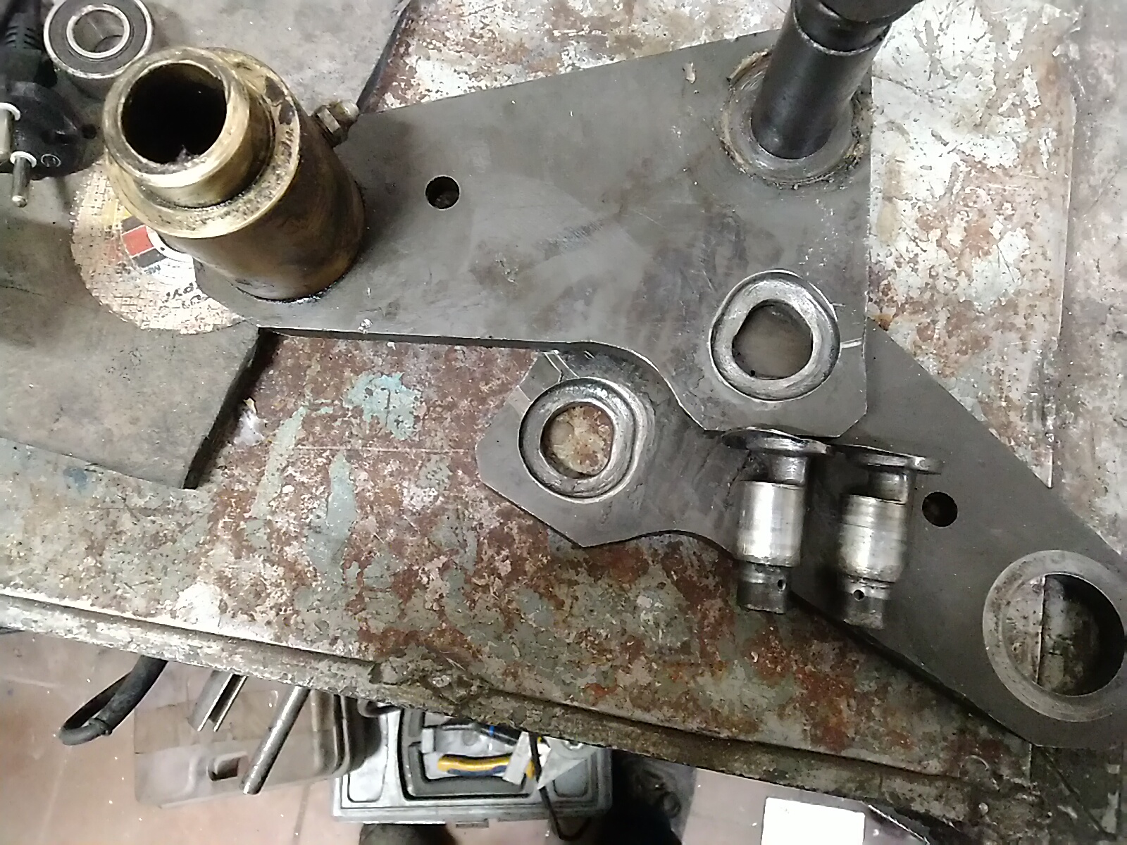 По результатам осмотра - под замену комплект осей/пальцев/втулок коленно-рычажного механизма.