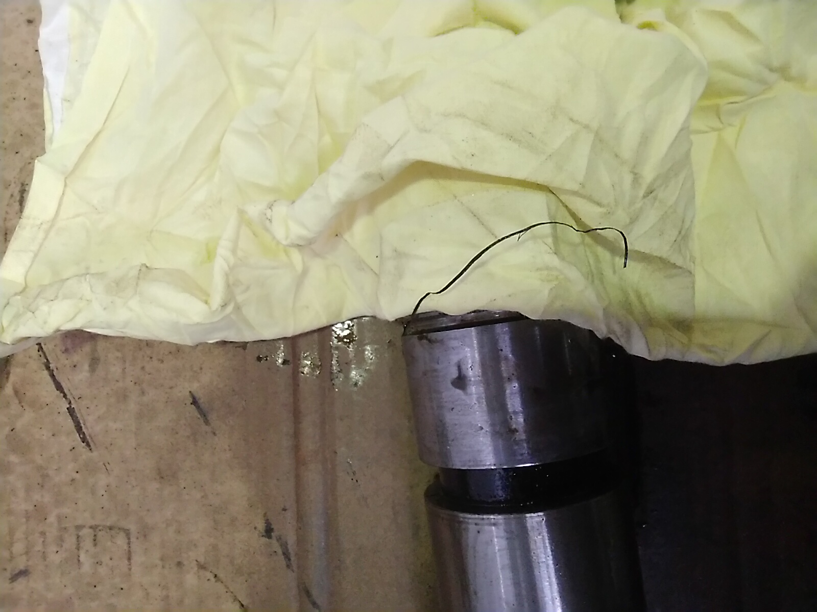 В процессе замены манжет по кромке смазочного канала на штоке одного из цилиндров обнаружен и удален заусенец шириной около 0,8 мм, длиной в 3/4 окружности штока.
