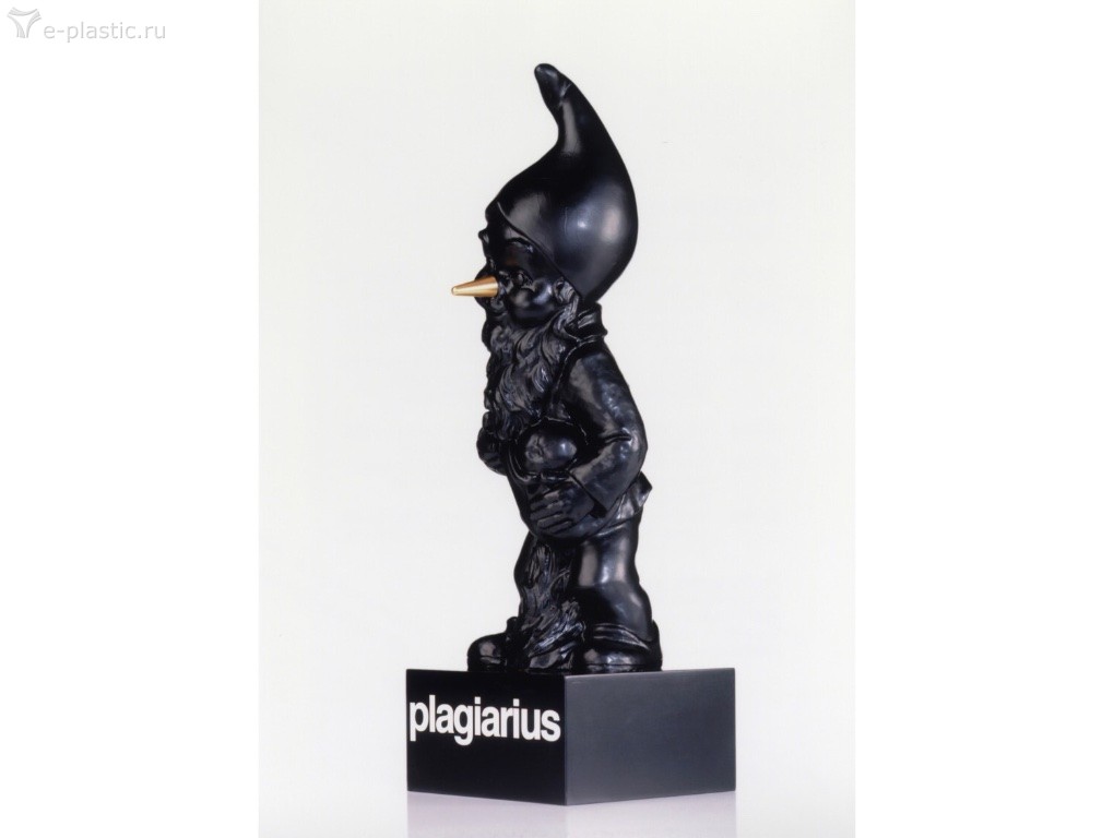 Черный карлик с золотым носом, то есть Plagiarius, ежегодно награждается наглыми фальсификаторами продукции с 1977 года. Золотой нос символизирует жадность к наживе, которая движет большинством фальшивомонетчиков.
